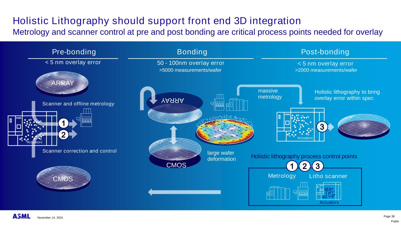 公共整体光刻应支持前端3D集成计量和扫描仪控制在前和后粘合是覆盖所需的关键工艺点page 38预粘合CMOS扫描仪校正和控制ARRAY扫描仪和离线计量21执行器后粘合Bonding ARRAY CMOS执行器大晶圆变形3计量光刻扫描仪整体光刻工艺控制点执行器321 > 5000测量/晶圆50-100nm叠加误差> 2000测量/晶圆< 5nm叠加误差< 5nm叠加误差整体光刻带来规范内的叠加误差大规模计量2024年11月14日