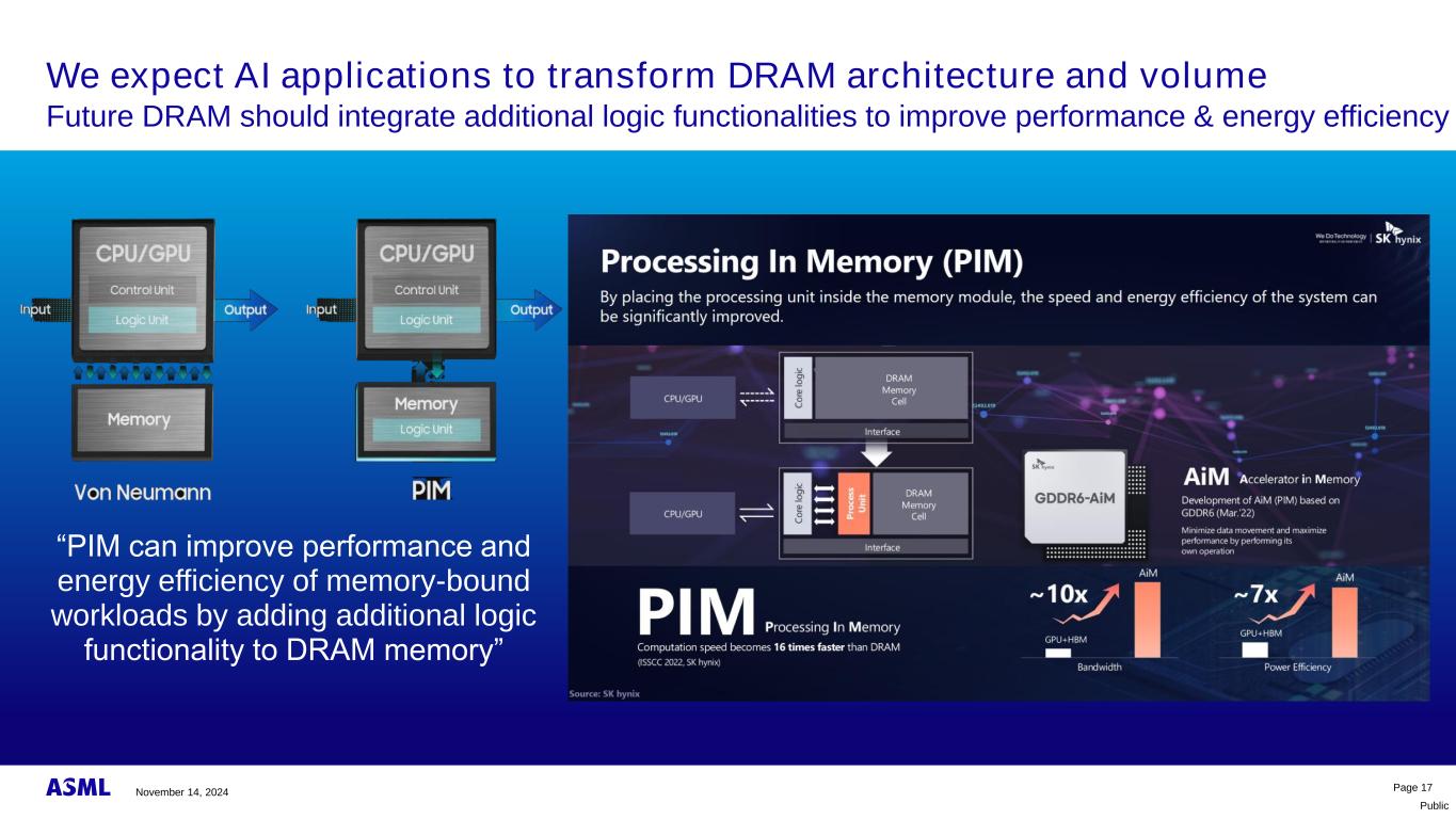 Public我们预计AI应用将改变DRAM架构和体积未来的DRAM应该集成额外的逻辑功能以提高性能和能效第17页“P M可以通过向DR M内存添加额外的逻辑功能来提高内存绑定工作负载的性能和能效”2024年11月14日