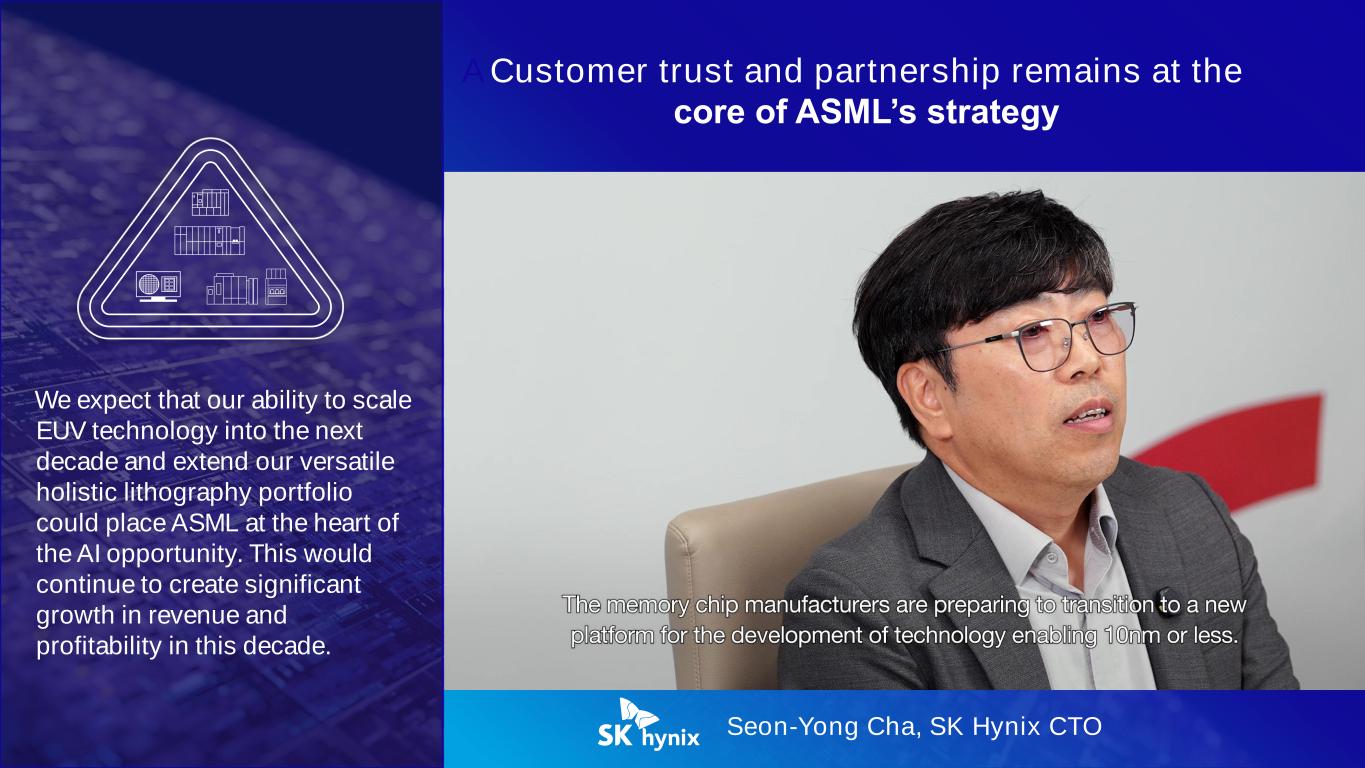 Public ACustomer信任和合作伙伴关系仍然是ASML战略的核心Seon-Yong Cha,SKHynix CTO我们预计,我们将EUV技术扩展到下一个十年并扩展我们多才多艺的整体光刻产品组合的能力,可能会将ASML置于AI机会的核心。这将继续在本十年创造收入和盈利能力的显着增长。
