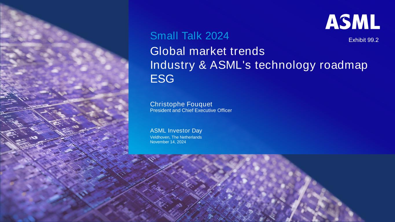 Public Christophe Fouquet全球市场趋势Industry & ASML的技术路线图ESG ASML Investor Day Veldhoven,Netherlands 2024年11月14日总裁兼首席执行官Small Talk 2024 附件 99.2