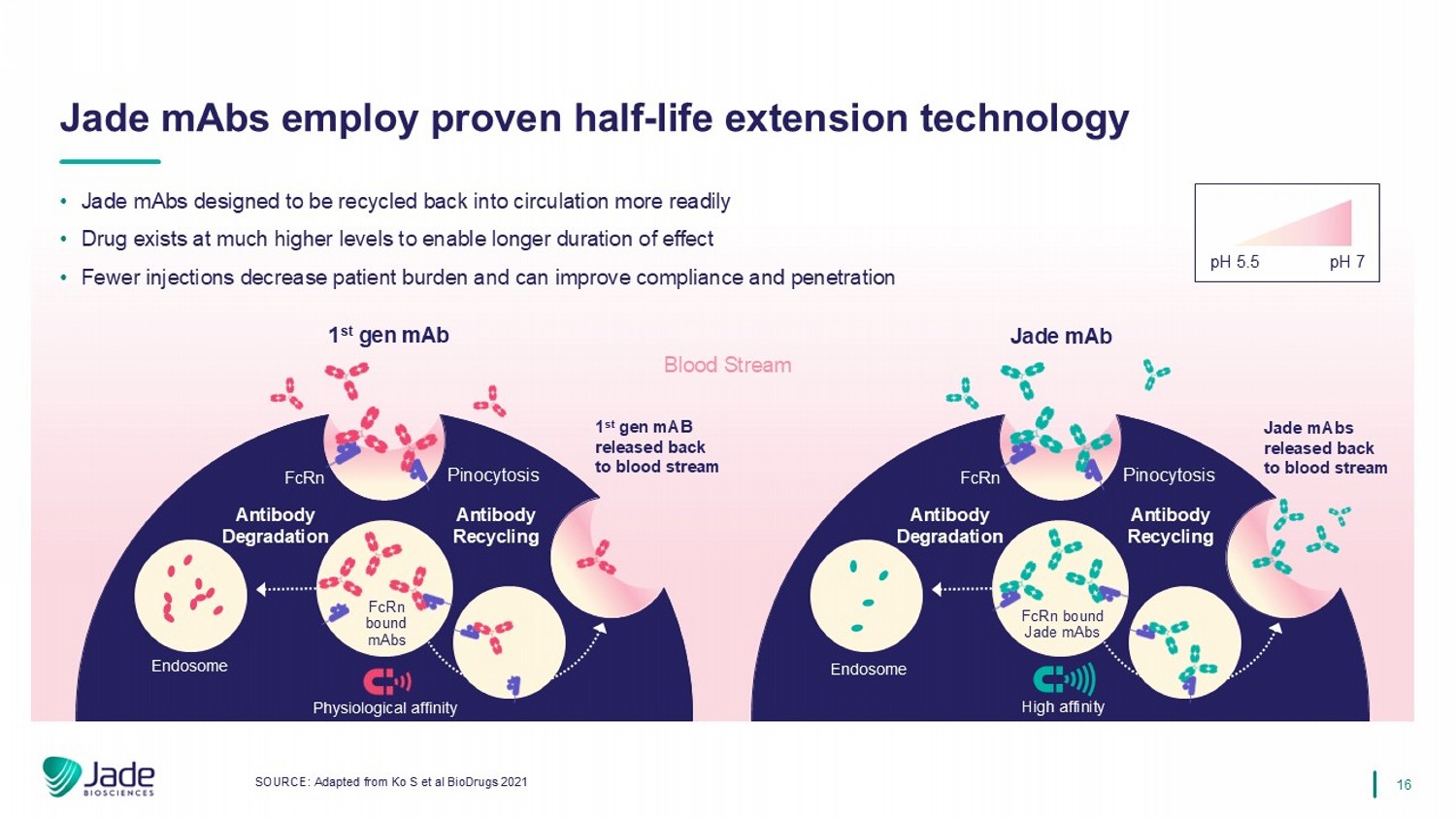16 pH 5.5 pH 7 • Jade MABs设计为更容易回收回流通•药物以高得多的水平存在,以实现更长的作用持续时间•更少的注射可减少患者负担,并可提高依从性和渗透来源:改编自KO S等BioDrugs的2021 Jade MABs采用经过验证的半衰期延长技术血流抗体降解抗体循环内质体1 st gener MAB FCRN胞饮作用抗体降解抗体循环内质体Jade MAB FCRN结合Jade MABs高亲和力1 st gener MAB释放回血流FCRN结合MABs Jade MABs释放回血流FCRN胞饮作用生理亲和力