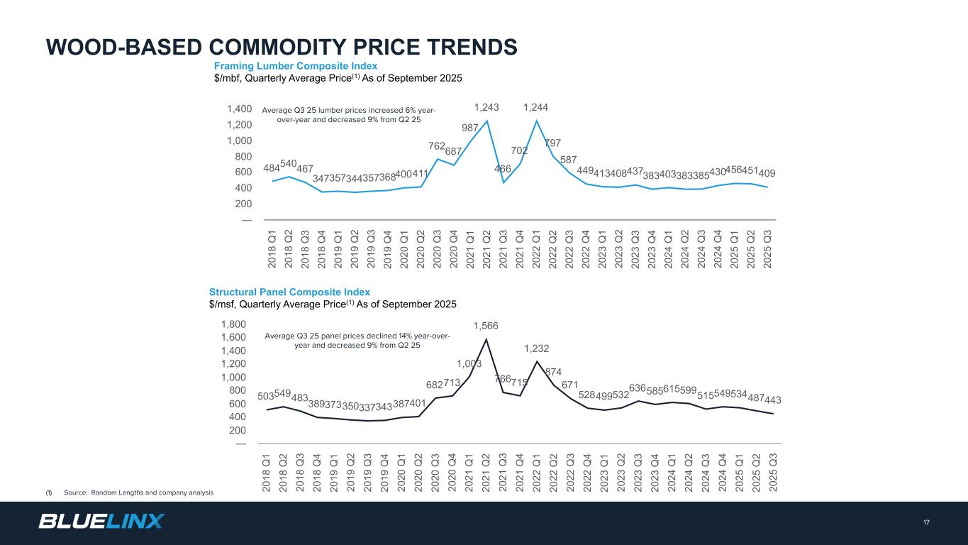 20年平均值(1)来源:历史数据为美国人口普查局;来自John Burns房地产咨询有限责任公司的预测主题限制和免责声明–不得用于再分配(2)来源:哈佛大学住房研究联合中心。改造活动领先指标(LIRA)提供了全国自住房屋的家装和维修支出的短期前景。(3)资料来源:历史数据为房地美;预测:John Burns Real Estate Consulting,LLC主体限制和免责声明–不得重新分配。抵押贷款利率料保持在20年平均水平以上开工料约为20年平均水平远高于2009-2011年水平16宏观经济趋势预计2025-2026年改建支出将略有上升20年平均水平2000200120022003200420052006200720072008200920102011201120122013201320142016201720182019202020202020202020202020202020202020202020202020202020202020202020202020202020202020202020202020202020202020202020202020202020202020202020202020202020202020202020202020202020202020202020202020202020202020202020202020202020202020202020202020202020202020202020202020202020202020202020202020202020202020202020202020202020202020202020202020202020202020202020202020202020202020202020202020202020202020202020202020202020202020202020202020202020202020202020202020202020202020202020202020202020202020202020202020202020202020202020202020以千为单位开始(1)200020012002200320042005200620072008200920102011201220122016201720182019192020202120222023202420252026 $ 0 $ 50 $ 100 $ 150 $ 200 $ 250 $ 300 $ 300 $ 350 $ 400 $ 450 $ 500 $ 550 LIRA重塑活动指数TTM移动总计-以十亿美元计(2)2000200120022003200420052006200720082009201020112012201320142015201620172018201920202120212022202320242025 P 2026 P 2027 P 2028 P —% 1.0% 2.0% 3.0% 4.0% 5.0% 6.0% 7.0% 8.0% 9.0%截至2025年10月的30年期固定抵押贷款利率(3)