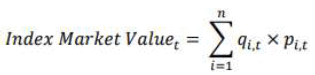 qi =指数证券i在纳斯达克100中申请的股票数量®科技板块指数SM。股份数量可以基于每个特定指数方法中确定的任意数量的项目,包括流通股总数(TSO)、自由流通股的应用、股息收益率、由于外国所有权限制而进行的修改、由于上限而进行的修改等。这也可以称为指数股。
