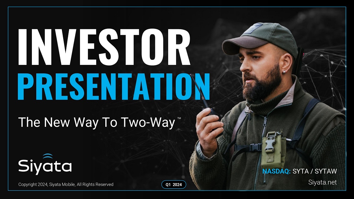 投资者演示版权所有2024,Siyata Mobile,保留所有权利Q1 2024 NASDAQ:SYTA/SYTAW SYATA.net The New Way to Two-Way TM