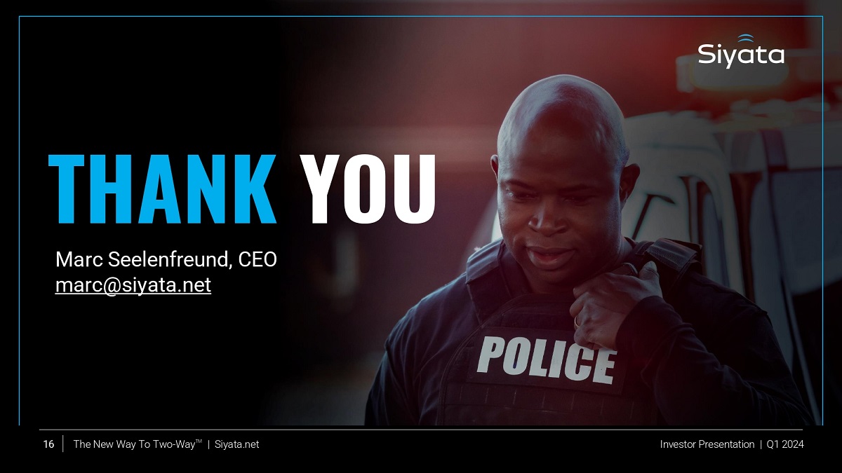 谢谢marc @ siyata.net16首席执行官Marc Seelenfreund投资者说明会| 2024年第一季度双向新方式TM | Siyata.net