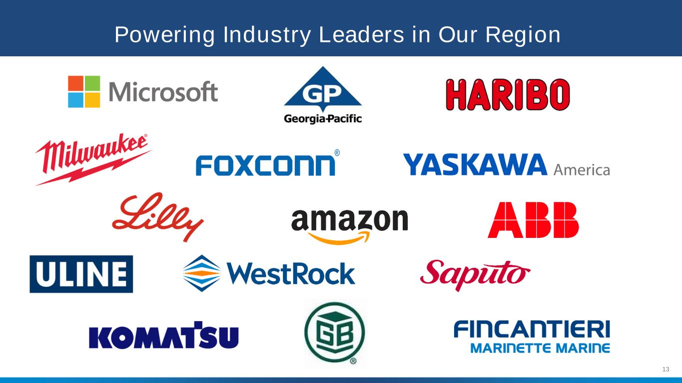 4333%按分部划分的大型C & I造纸/包装25%采矿/Minerals 11%铸造(SIC 33)9%其他制造业8%金属(SIC 34,35,37)7%医疗7%食品/农业6%教育4%化工3%印刷3%办公2%其他15%平衡多样的销售混合大型C & I 33%住宅和农场31%小型C & I 36% 2024零售兆瓦时交付混合**威斯康星部分包括上半岛的密歇根电力和零售选择客户。