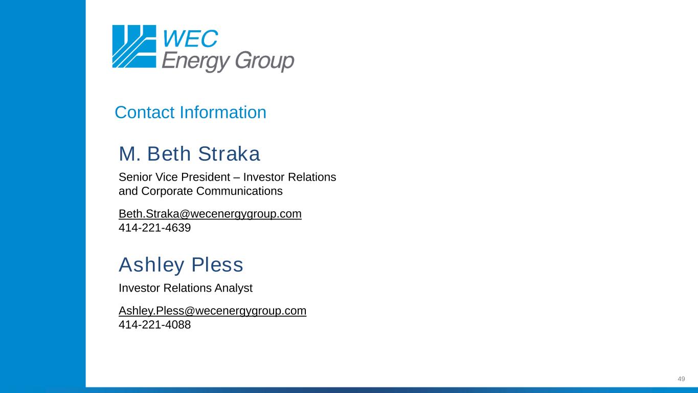 49联系信息M. Beth Straka高级副总裁–投资者关系和企业传播Beth.STraka@wecenergygroup.com 414-221-4639 Ashley Pless投资者关系分析师Ashley.pless@wecenergygroup.com 414-221-4088