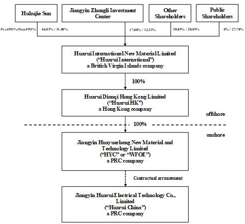 我们在英属维尔京群岛注册成立。作为一家控股公司,我们没有自己的实质性业务,我们通过我们的可变利益实体,或VIE,江阴市华瑞电气技术有限公司,或华瑞中国在中国开展业务。