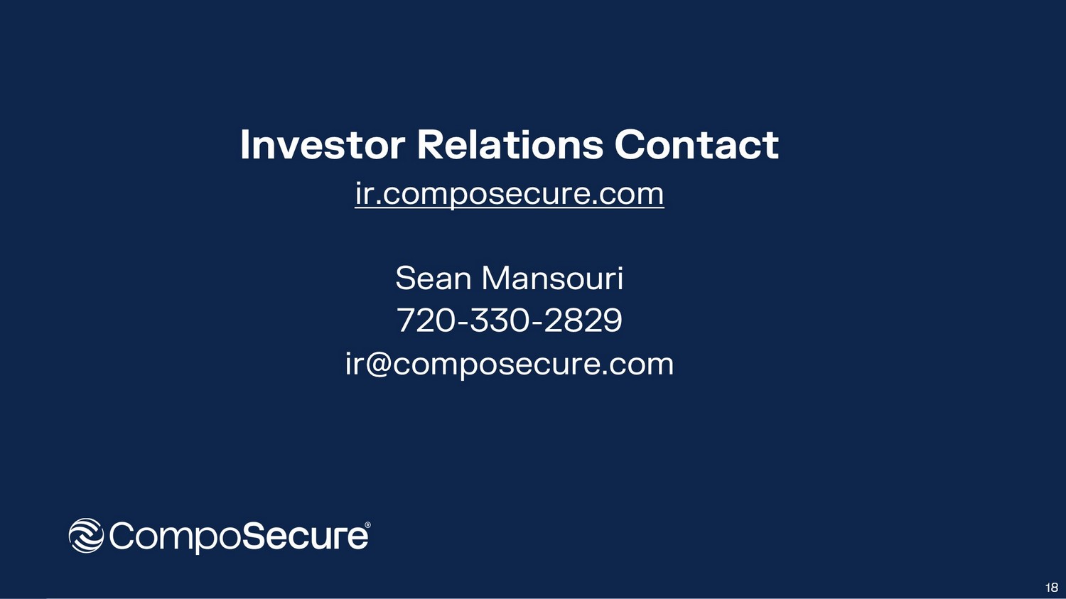 投资者关系联系人ir.composecure.com Sean Mansouri 720-330-2829 ir@composecure.com 18