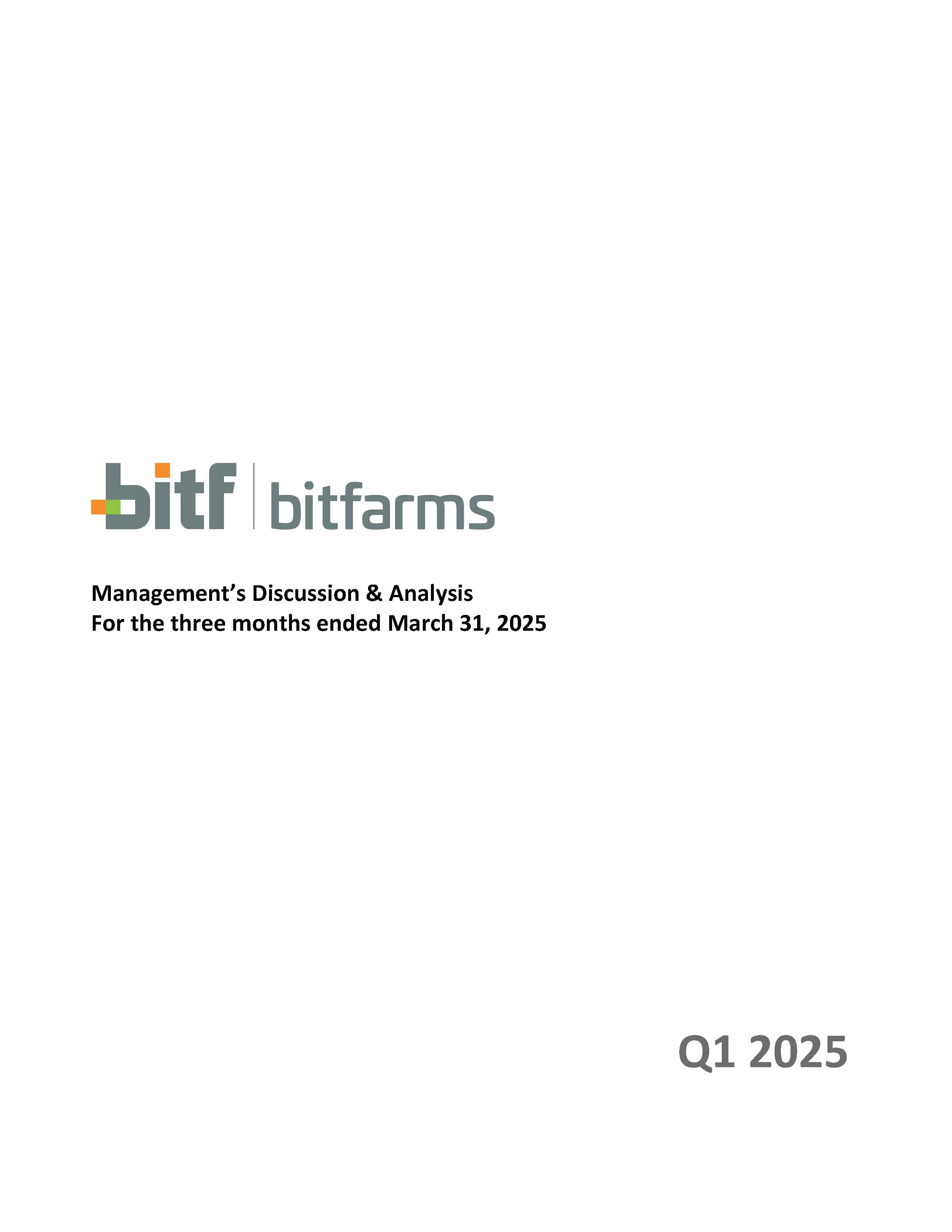 以下管理层对Bitfarms Ltd.(连同其附属公司,“公司”或“Bitfarms”)的讨论及分析(“MD & A”)已编制完成,截至2025年5月13日。本MD & A应与公司截至2025年3月31日止三个月的未经审核中期简明综合财务报表及其附注(“财务报表”)、公司2024年经审核年度综合财务报表及其附注(“2024年年度财务报表”)以及公司日期为2025年3月26日的年度信息表(“2024年AIF”)一并阅读,这些信息可在SEDAR +网站www.sedarplus.ca和EDGAR网站www.sec.gov/edgar上查阅。