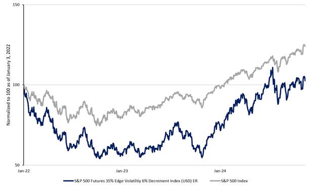 假设回测与历史标普 500期货35%边波动率6%递减指数(美元)ER表现与历史标普 500的比较®指数表现