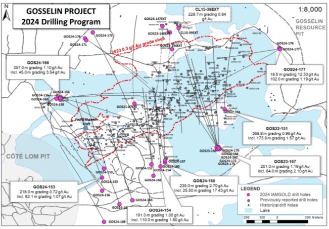 IAMGOLD很高兴地宣布其在Gosselin的划定和扩展钻探计划的额外化验结果。正在进行的35000米金刚石钻探计划旨在瞄准C ô t é和Gosselin带之间矿化角砾岩的潜在连接延伸,并测试Gosselin带在深度的矿化包络的连续性。今天报告的化验结果包括在2023年8月19日至2024年9月3日期间完成的34个(34个)金刚石钻孔,总计31,861米。该计划包括二十八(28)个NQ钻孔,总计29,603米,以及先前钻孔的六(6)个扩展,钻孔2,258米。化验结果可在本新闻稿末尾的表1中找到。