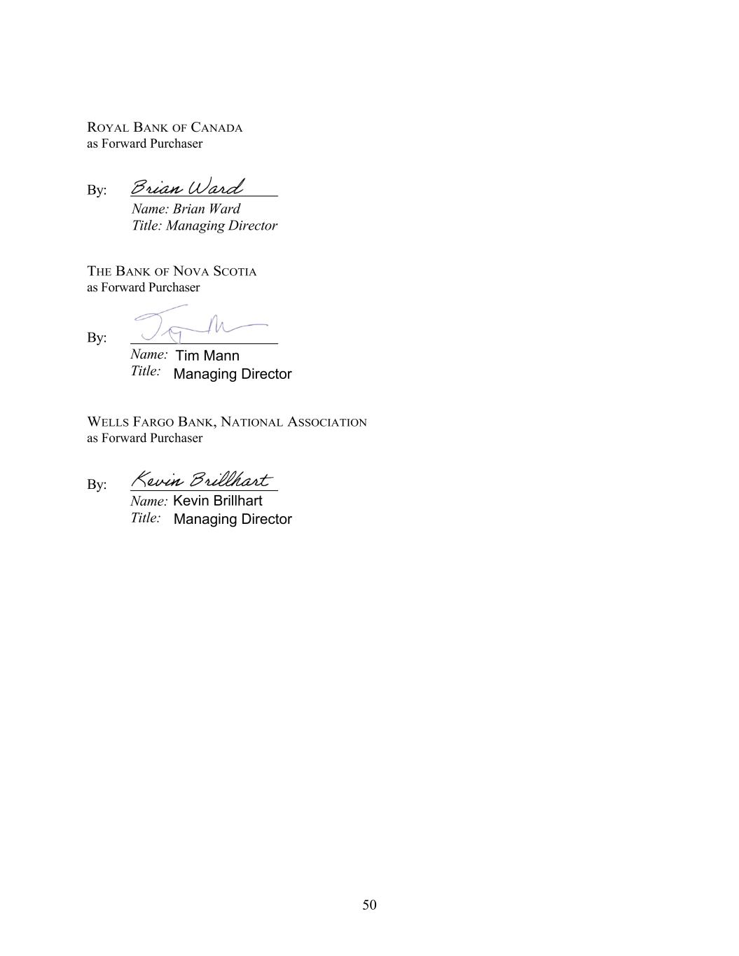 加拿大皇家银行作为远期买方由:新斯科舍银行作为远期买方由:名称:标题:富国银行,全国协会作为远期买方由:名称:标题:50名称:Brian Ward标题:董事总经理Tim Mann董事总经理Kevin Brillhart董事总经理