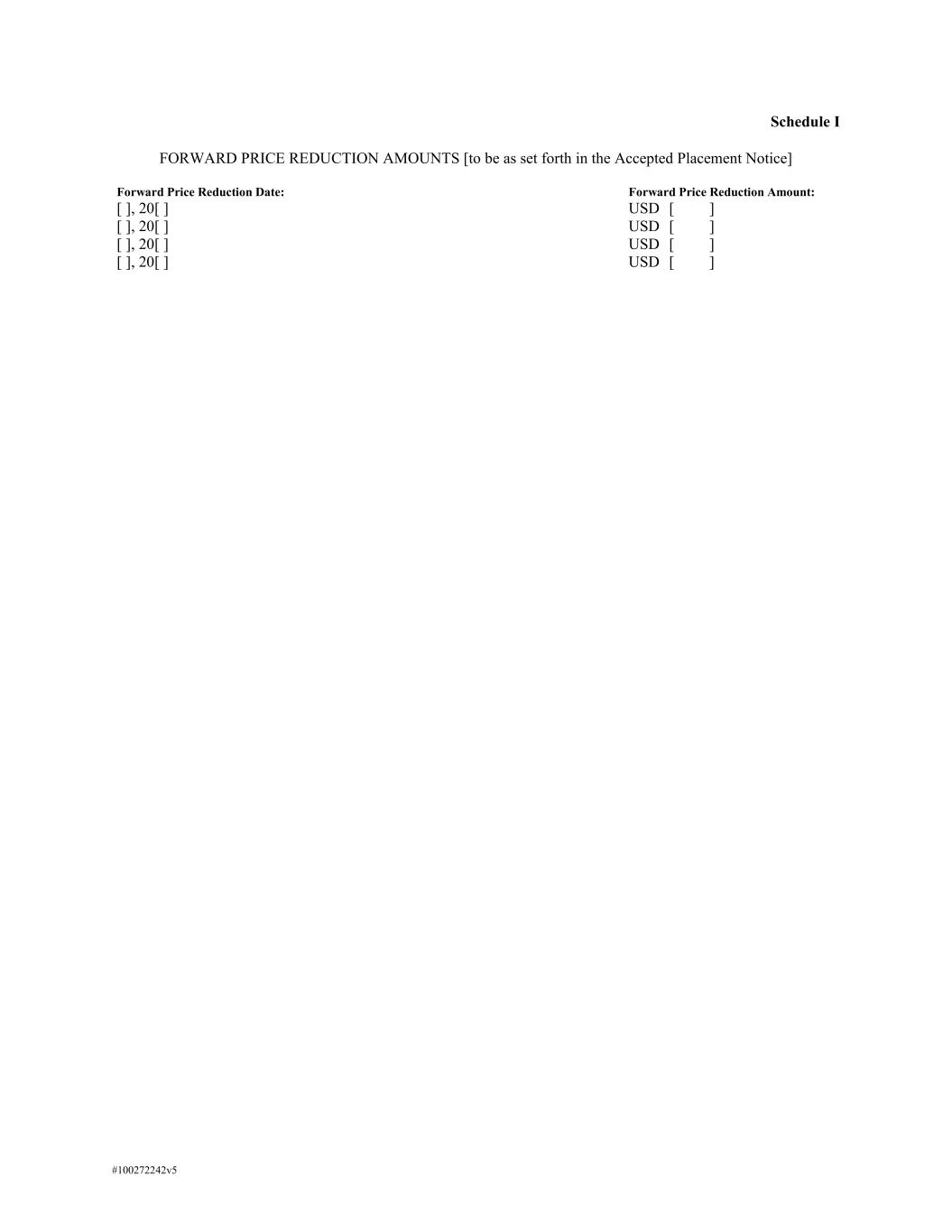 # 100272242v5附表I远期降价金额[以已接受的配售通知中所述为准]远期降价日期:远期降价金额:[ ],20 [ ]美元[ ] [ ],20 [ ]美元[ ] [ ],20 [ ]美元[ ] [ ],20 [ ]美元[ ] [ ],20 [ ]美元[ ] [ ],20 [ ]美元[ ]