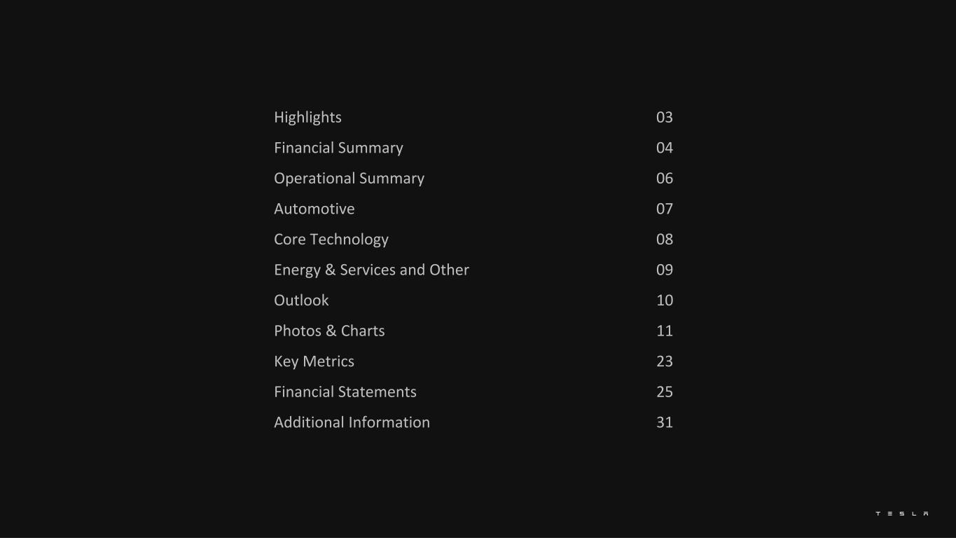 亮点03财务摘要04运营摘要06汽车07核心技术08能源与服务及其他09展望10照片和图表11关键指标23财务报表25附加信息312