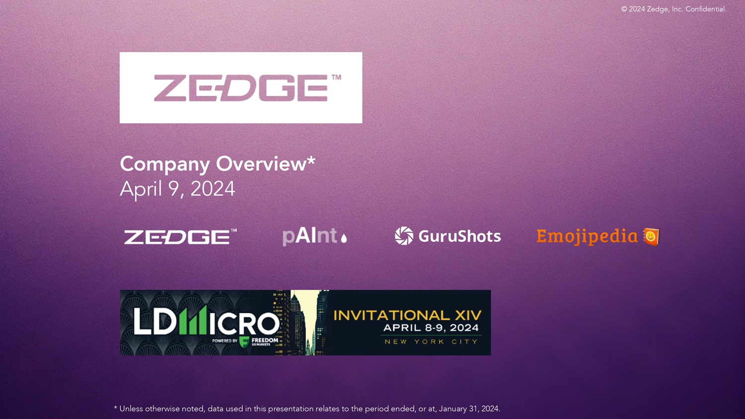 公司概况* 2024年4月9日© 2024 Zedge, Inc.机密。*除非另有说明,本演示文稿中使用的数据涉及截至2024年1月31日或截至2024年1月31日的期间。