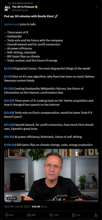 Chamath Palihapitiya:顺便说一下,如果我们围绕公司治理角全面转身,也是在本周,OpenAI重组的有趣之处在于我看了信,你的诉讼被排除在加州总检察长的津贴之外,基本上是说这件事可以通过,这意味着你的诉讼还在外面,对吧?我认为这将进入陪审团审判。