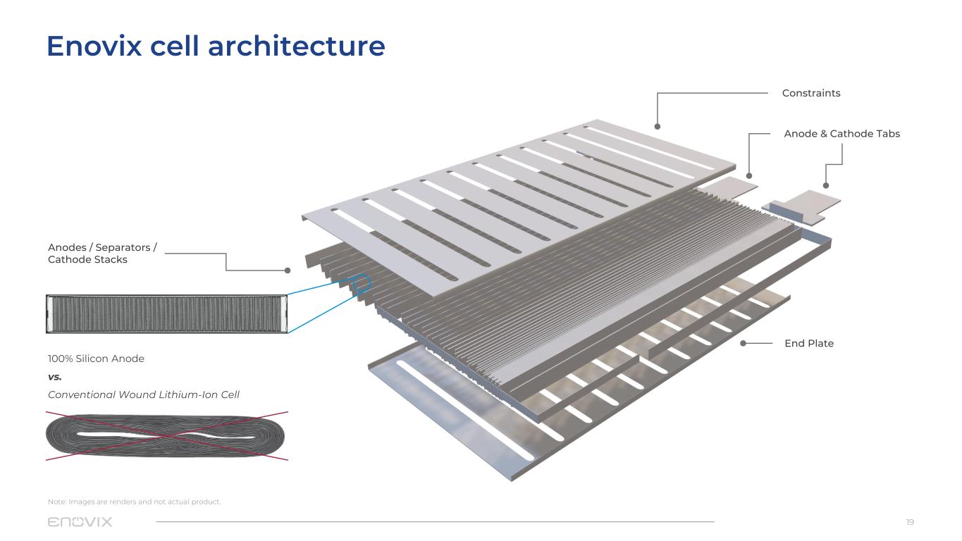 Enovix细胞架构19注:图像为渲染图,非实际产品。Anode & Cathode Tabs端板限制Anodes/Separators/Cathode Stacks 100% Silicon Anode vs. Conventional Wound Lithi-Ion Cell