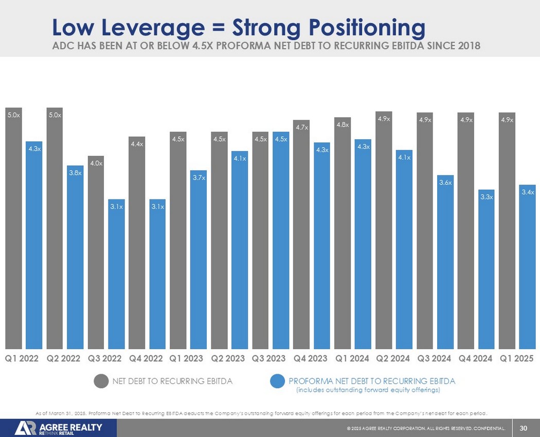 30©2025同意房地产公司。保留所有权利。机密。5.0x 4.3x 5.0x 3.8x 4.0x 3.1x 4.4x 3.1x 4.5x 3.7x 4.5x 4.1x 4.5x 4.5x 4.7x 4.3x 4.8x 4.3x 4.9x 4.1x 4.9x 3.6x 4.9x 3.3x 4.9x 3.4x(包括未偿还的远期股票发行)ADC自2018年以来一直处于或低于4.5倍的备考净债务与经常性EBITDA之比低杠杆=截至2025年3月31日的强劲定位。备考净债务与经常性EBITDA之比从公司每期的净债务中扣除公司在EA CH期间的未偿还远期股票发行。备考净债务与经常性EBITDA的净债务与经常性EBITDA的比率2024 Q3 Q4 2024 Q1 2025 Q2 2022 Q3 2022 Q4 2022 Q1 2023 Q2 2023 Q3 2023 Q4 2023 Q1 2024 Q2 2024 Q1 2022