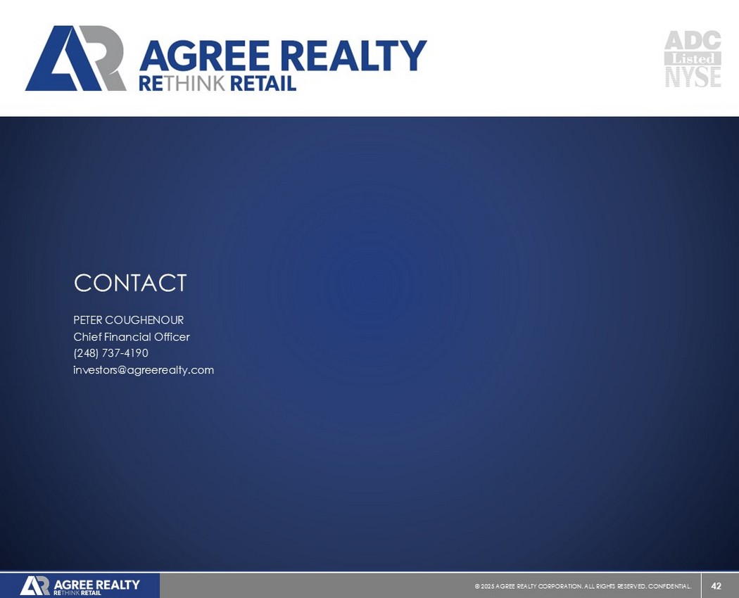 42©2025同意房地产公司。保留所有权利。机密。联系Peter COUGHENOR 首席财务官(248)737-4190investors@agreerealty.com