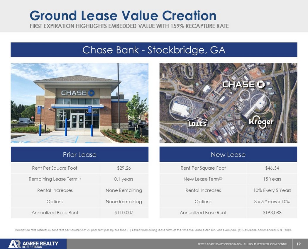 18©2025同意房地产公司。保留所有权利。机密。13% 12% 12% 7% 6% 5% 4% 3% 3%截至2025年3月31日。(1)有关公司对投资级别的定义,请参见幻灯片16的脚注1。任何差异都是四舍五入的结果。费用简单所有权+重大租户投资地租赁组合细分地租赁信用概览(% ABR)88%投资等级(1)7%未评级5%次级-投资等级地租赁组合概览231租赁占总投资组合的10.6% ABR9.5年加权平均租赁期限顶地租赁租户(% ABR)