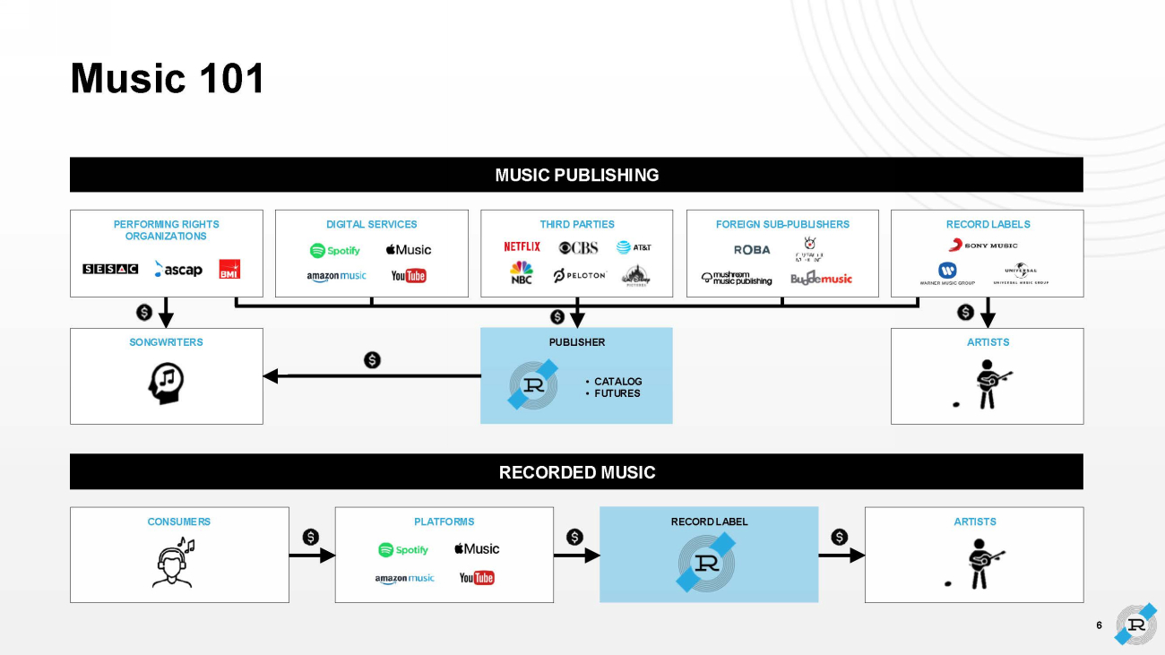 音乐101音乐出版艺术家歌曲作家外国次级出版商记录标签执行权利组织数字服务第三方出版商•目录•期货记录音乐消费者平台记录标签艺术家6