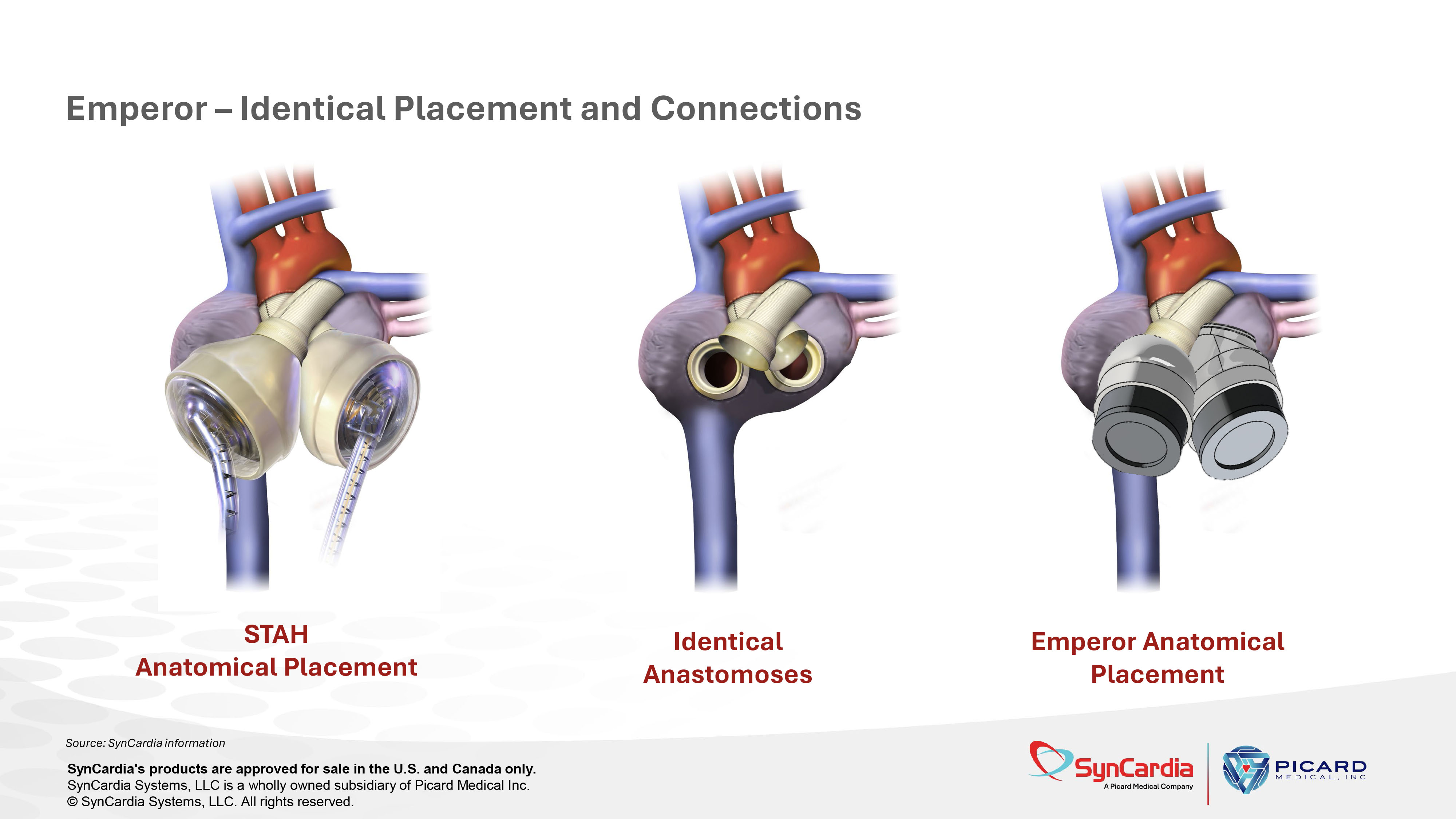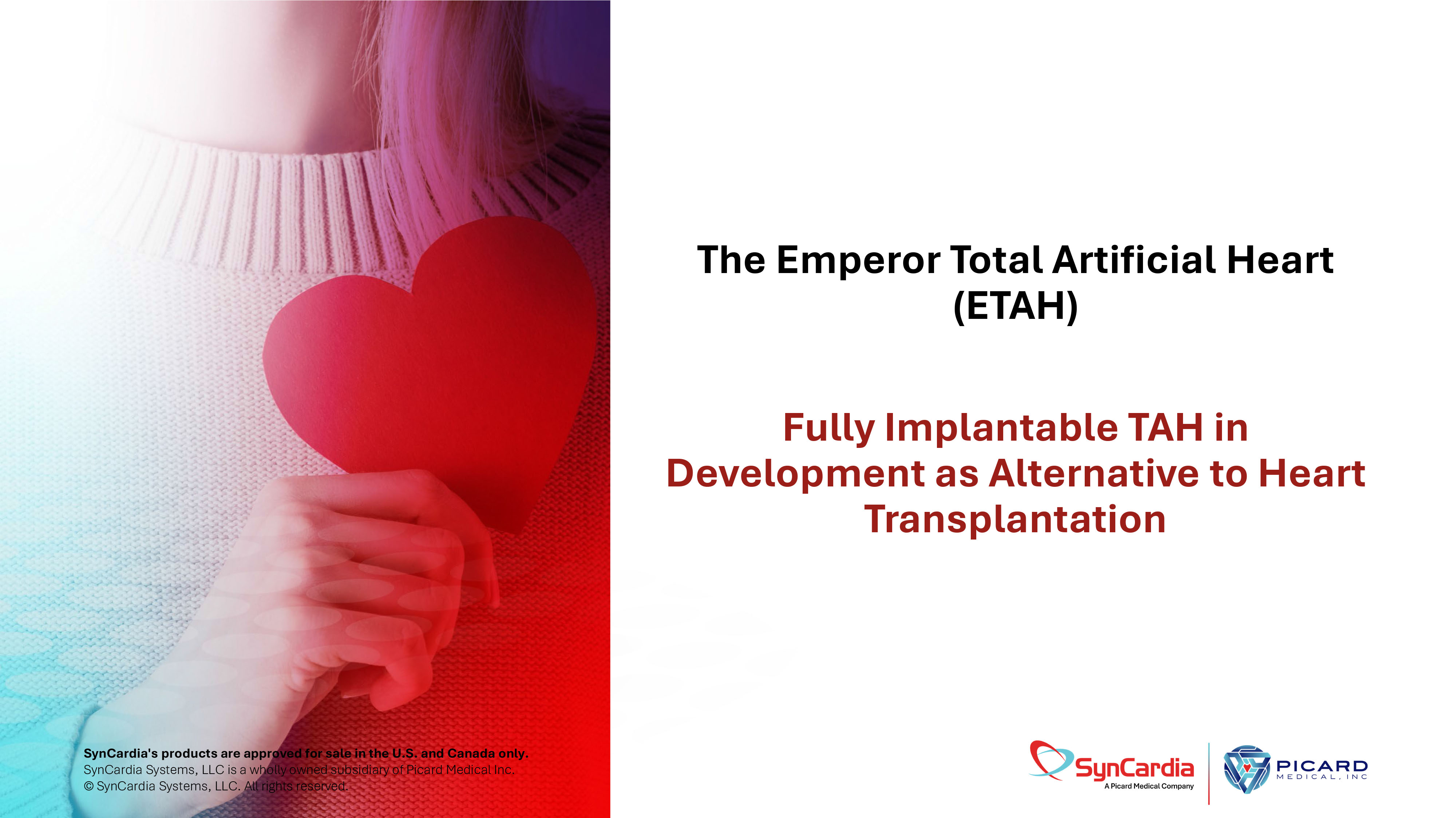 开发中的皇帝全人工心脏(ETAH)全植入式TAH作为心脏移植的替代品SynCardia的产品仅获准在美国和加拿大销售。SynCardia Systems,LLC是Picard Medical Inc.的全资子公司。©SynCardia系统有限责任公司。版权所有。
