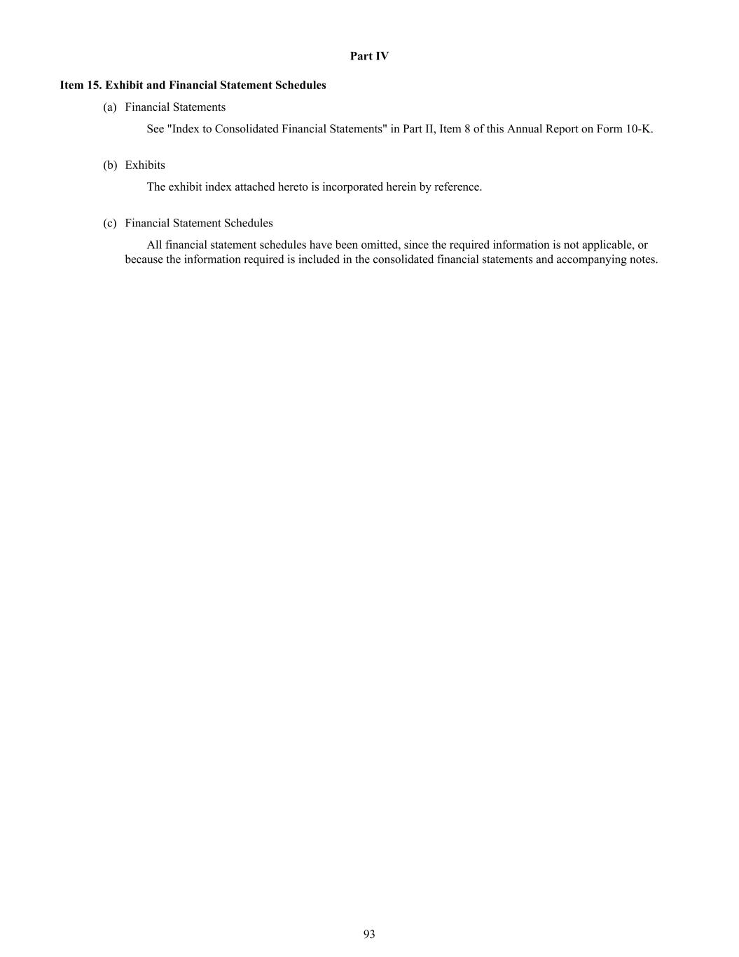 第四部分项目15。附件和财务报表附表(a)财务报表见本年度报告第10-K表第II部分第8项中的“综合财务报表索引”。(b)附件随附的附件索引以引用方式并入本文。(c)财务报表附表由于所需信息不适用,或由于所需信息已包含在合并财务报表及附注中,所有财务报表附表均已省略。93