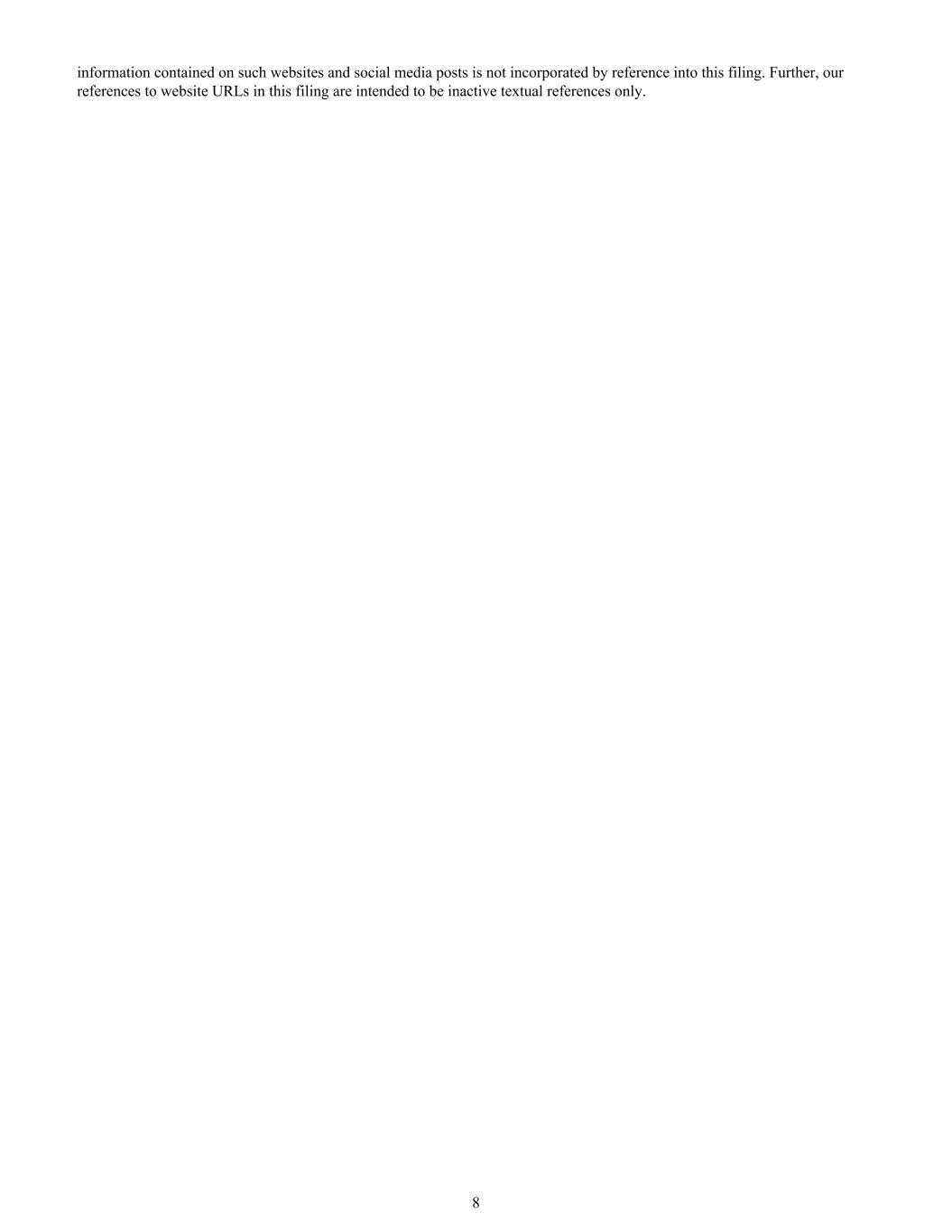 此类网站和社交媒体帖子中包含的信息未通过引用并入本文件。此外,我们在本文件中对网站URL的引用仅旨在作为非活动文本引用。8