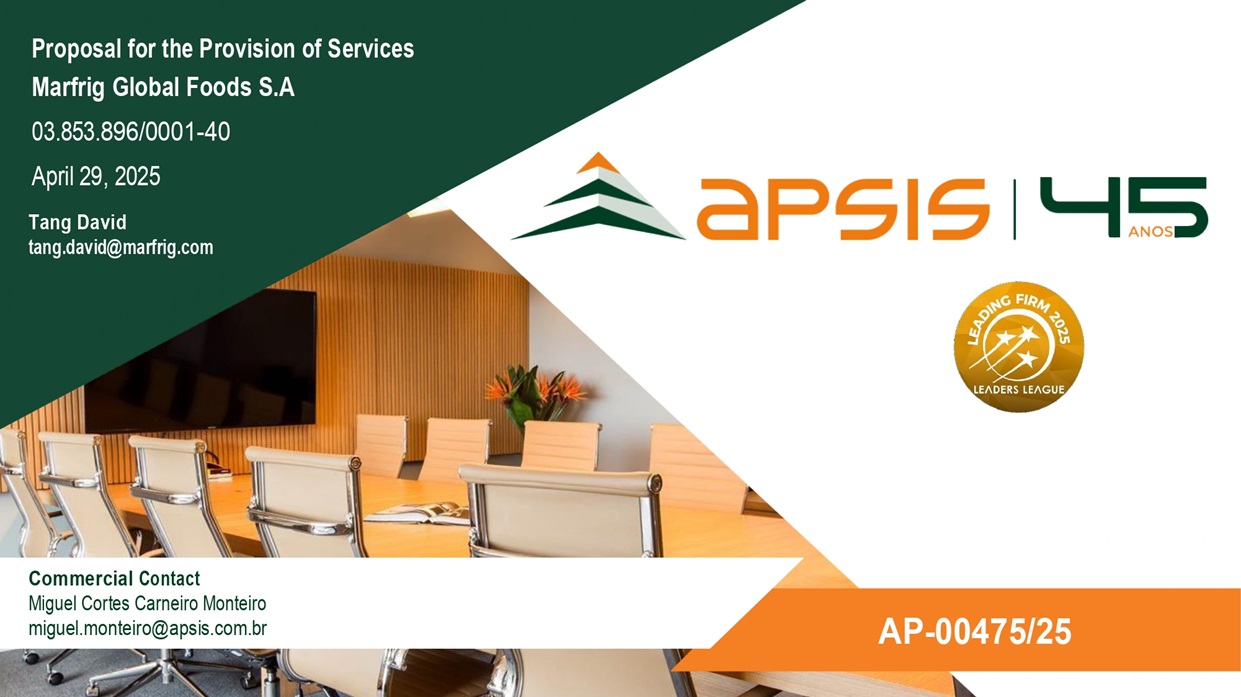 一般条件与服务范围有关的基本参数将在接受这一建议后立即定义,以便能够规划要开展的工作。我们的工作不代表根据巴西和国际审计标准对财务报表进行的审计或审查。因此,它们不能被视为这方面的意见或结论。本议案经双方同意,可以终止。在这种情况下,APSIS将按已开展的工作的比例支付本商业建议书中规定的费用。差旅和住宿费用,如为开展服务所需,不构成本提案/合同价值的一部分,将另行收取,但须经客户事先批准。如果APSIS负责购买门票和酒店住宿,费用将通过数字借条的方式收取,并与相应的收据一起发送给客户,并将免除任何税款,因为它们不构成本合同的对象。对于涉及工程的工作,将技术责任说明(ART)发送给被签署的承包商。ART是一份文件,赋予所开展工作的合法性,并在区域工程和农学委员会(CREA)注册。工作结束时,将向承包者发送一份示范技术能力证书(ACT)进行分析。如果获得批准,我们将要求退回已填写并已签署的法案,以公司信笺抬头。