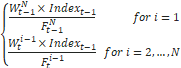 为一个指数期货合约展期日期,期货合约单位数量相对于最终观察计算如下: