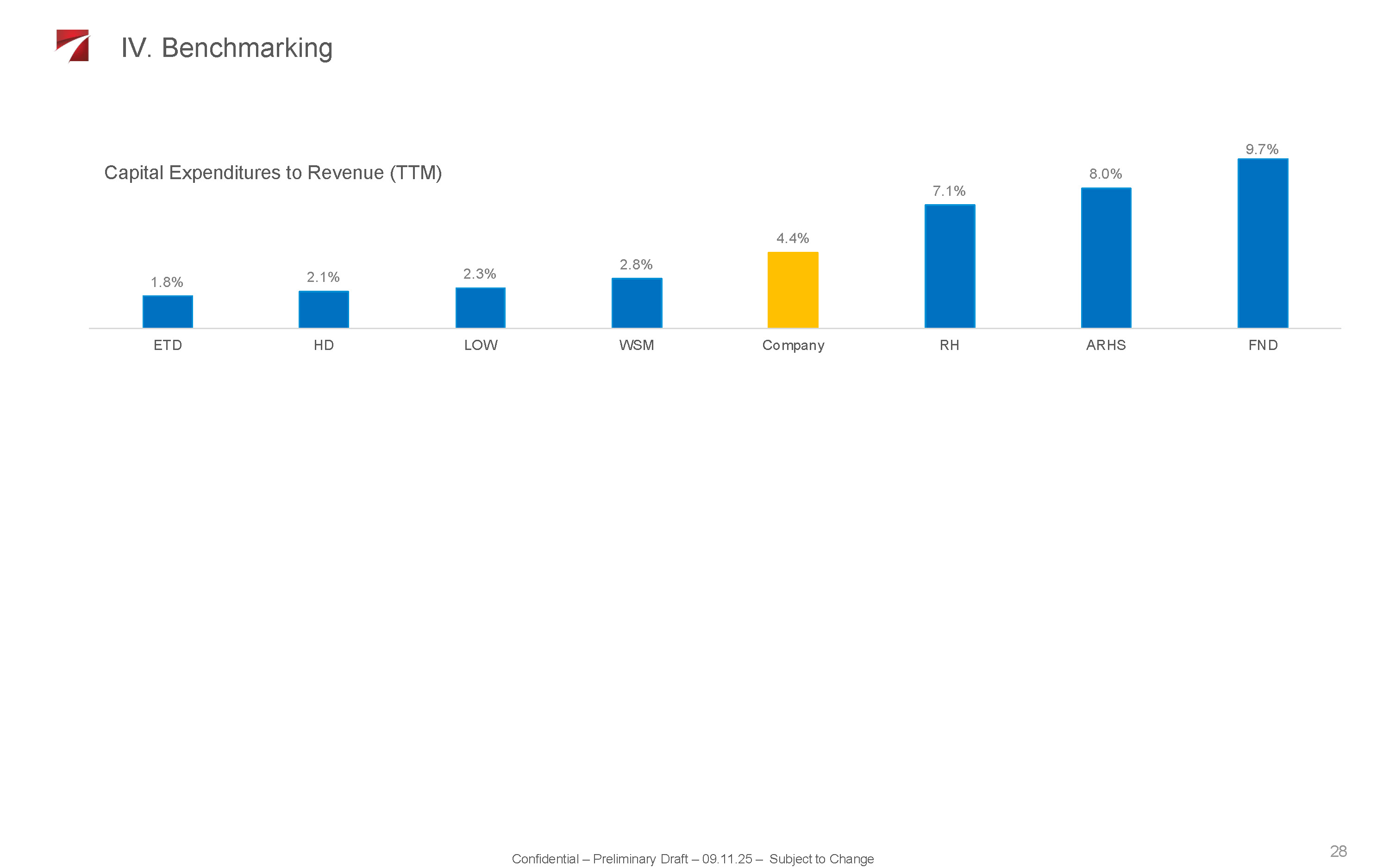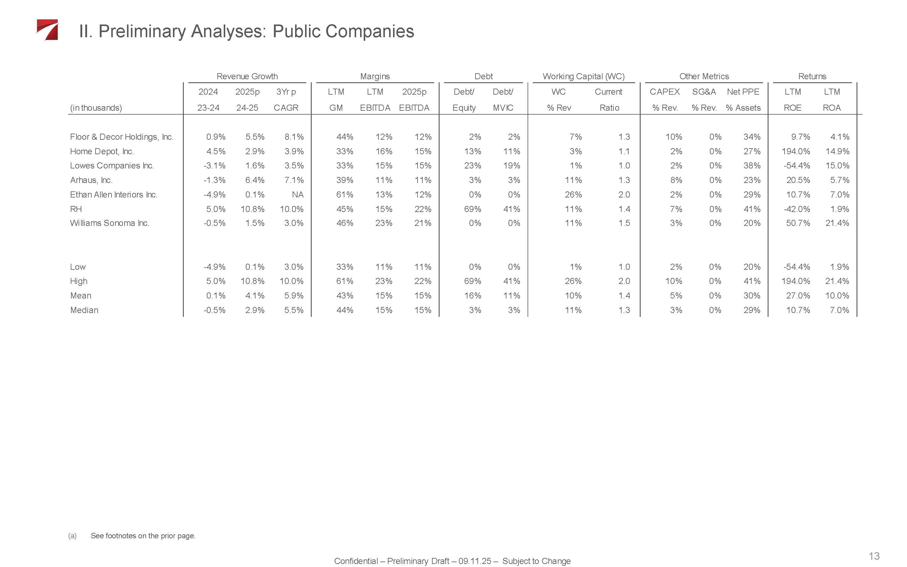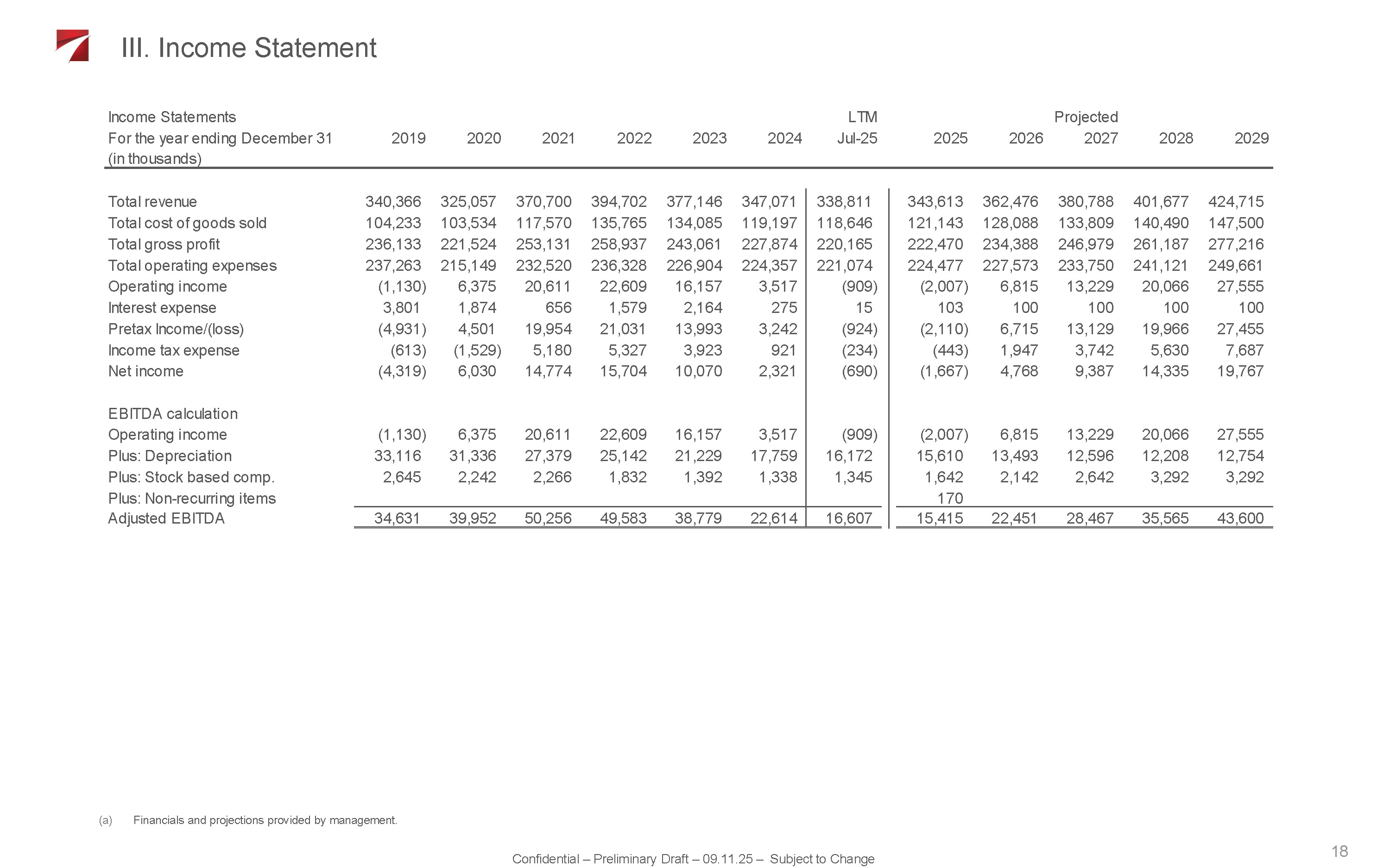iii.资产负债表18机密–初稿– 09.11.25 –可能变动2019年12月31日止年度资产负债表2019202020212022202320247/31/25(单位:千)资产现金9,91910,27210,0137,7598,62020,95720,294应收账款3,3702,9753,2023,4112,8823,0853,708存货97,62074,29697,175120,95293,67986,26785,417应收所得税3,0908,1166,9233,8591298501,543其他流动资产8,1808,9959,76910,4229,2488,6637,744流动资产总额122,179104,654127,082146,403114,558119,8净额130,46 199,03582,28571,09564,31759,73358,511使用权资产137,737132,374123,101118,501129,092132,861130,006递延所得税资产7,1965,3416,9536,5365,2564,8904,553其他资产2,2411,2861,3373,2873,4492,2971,803固定资产净额277,635238,036213,676 199,419202,114 199,781194,874总资产399,814342,690340,758345,822316,672319,603313,580负债和权益应付账款18,18115,38230,88423,50623,34523,8081927,054流动负债合计69,85076,80497,71283,29178,74578,39476,217长期债务净额63,000-5,00045,400---长期租赁负债净额131,451122,678110,262103,353112,697113,700109,450其他长期负债4,6144,1465,5605,0095,5434,5975,067长期负债合计199,065126,824120,822153,762118,240118,297114,517负债合计268,915203,628218,534237,053196,985196,691190,733所有者权益130,899139,062122,224 108,769119,687122,912122,847负债和权益