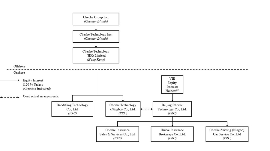 在本招股章程通篇,除文意另有所指外,提及“我们”或“我们”指的是Cheche Group Inc.,一家开曼群岛控股公司、其子公司,以及在描述经营和合并财务报表时所指的关联实体,提及“CCT”指的是Cheche Technology Inc.,一家我们的全资子公司。