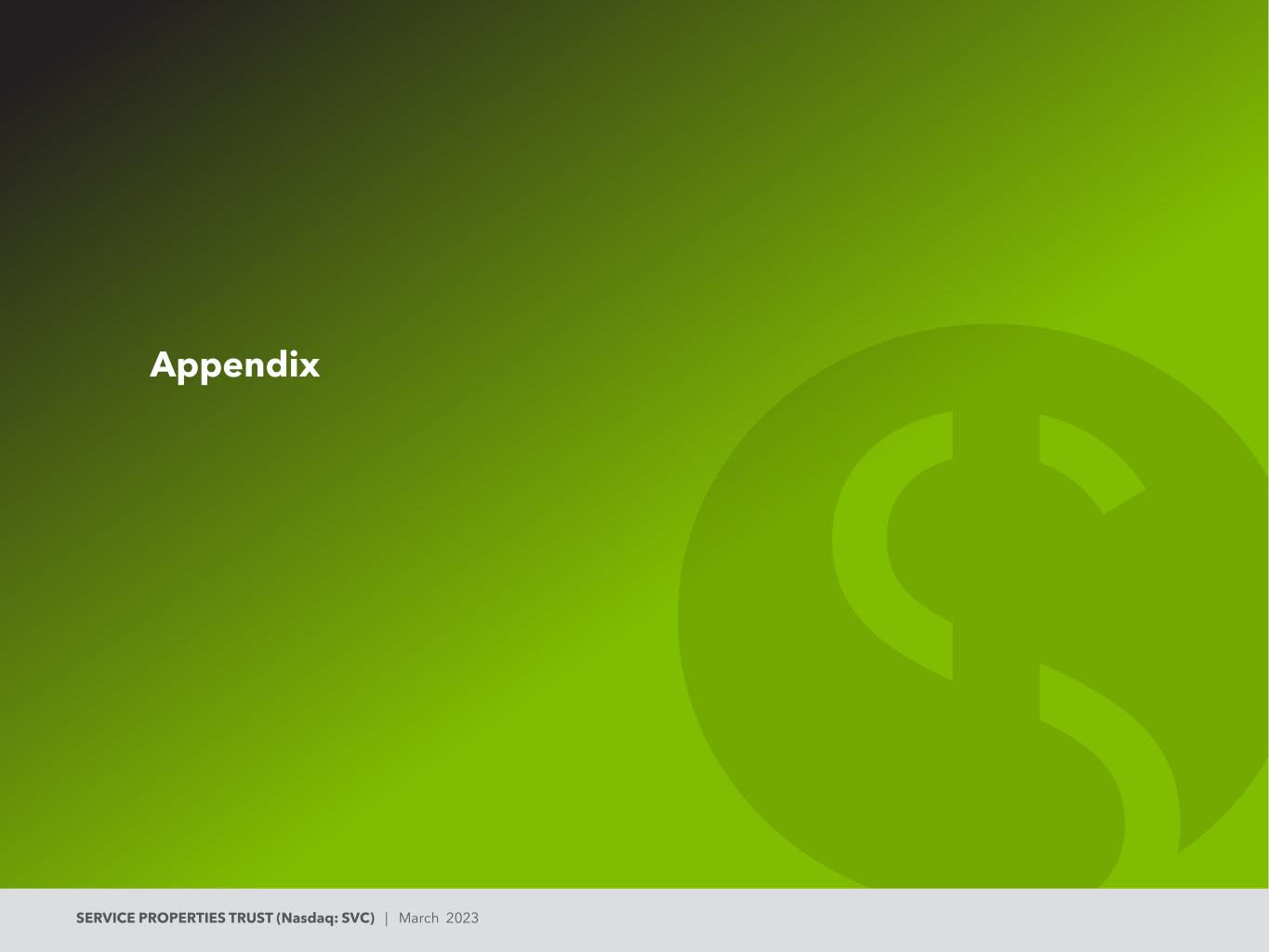 SERVICE PROPERTIES TRUST(Nasdaq:SVC)| 2023年3月附录