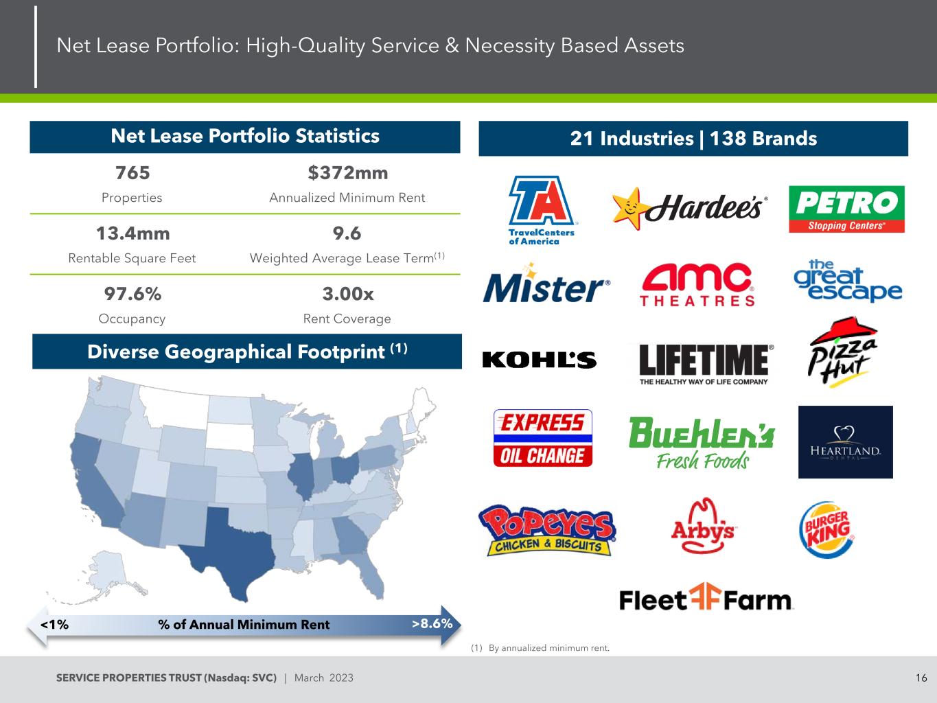 SERVICE PROPERTIES TRUST(Nasdaq:SVC)| 2023年3月净租赁组合