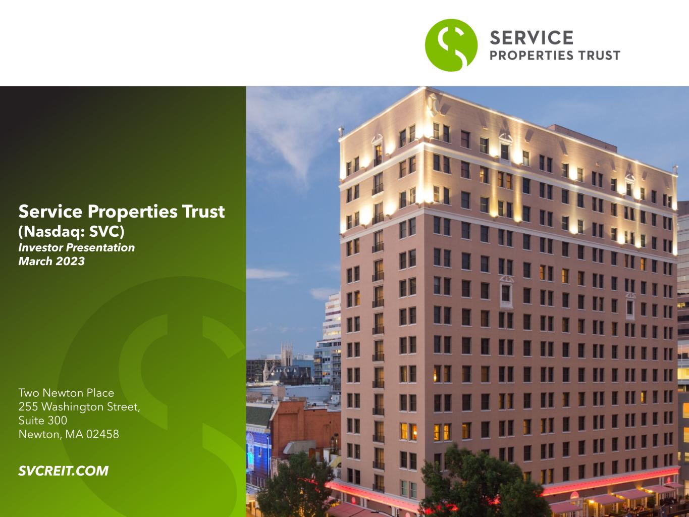 Service Properties Trust(Nasdaq:SVC)Investor Presentation March 2023 Two Newton Place 255 Washington Street,Suite 300 Newton,MA 02458 SVCRIT.COM