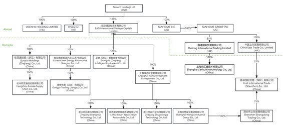 Tantech并非一家中国运营公司,而是一家在英属维尔京群岛注册成立的控股公司。作为一家控股公司,我们直接或间接拥有位于中国大陆、香港和美国的子公司的股权。绝大多数业务运营由我们设在中国大陆的子公司进行。