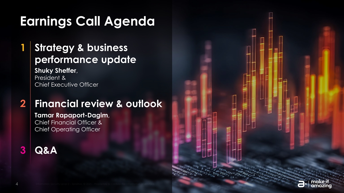 财报电话会议Agenda 1战略和业务绩效更新Shuky Sheffer,总裁兼首席执行官2财务回顾与展望Tamar Rapaport-Dagim,首席财务官兼首席运营官3问答信息安全级别2 –敏感。©2025 – AmDocs的专有和机密信息444