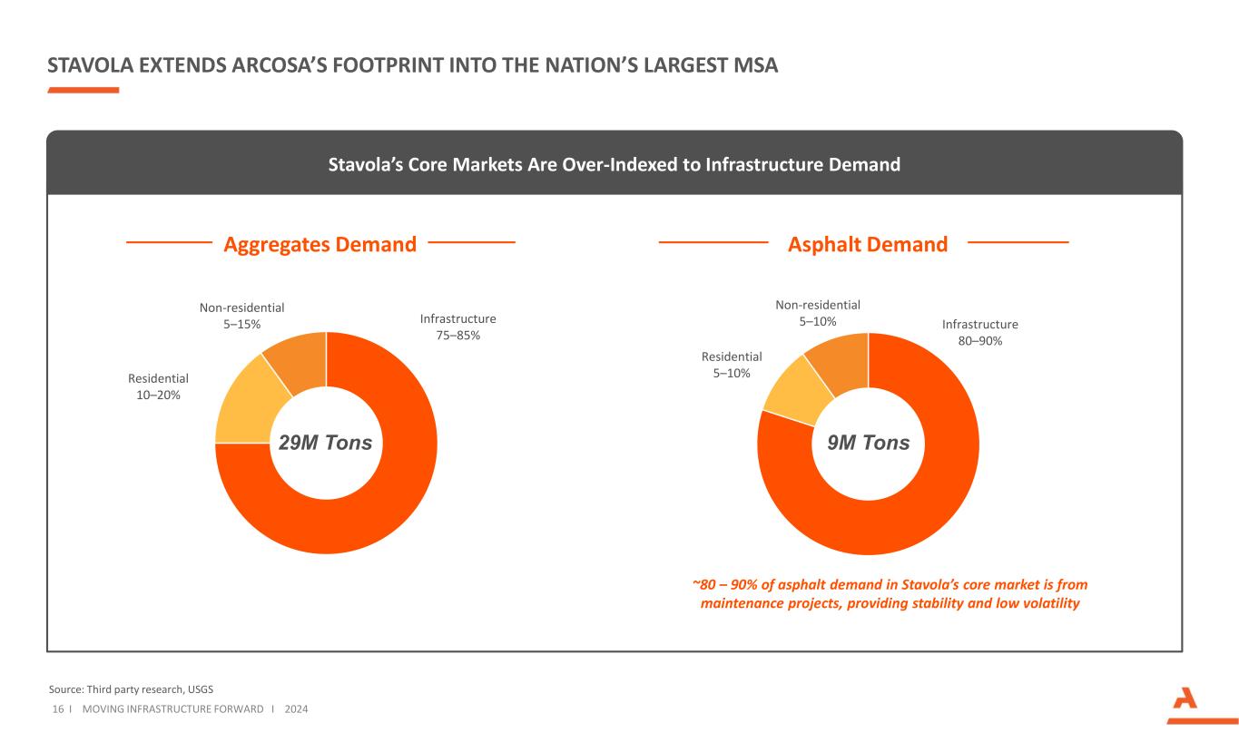 15 I Moving Infrastructure Forward I 2024 Stavola扩展和多样化Construction Products的地理足迹我们的骨料业务现在为50个最大的MSA天然骨料中的13个提供服务再生骨料沥青Stavola地点从Stavola建筑产品部门的增量存在现有的天然和再生骨料存在*****多个地点