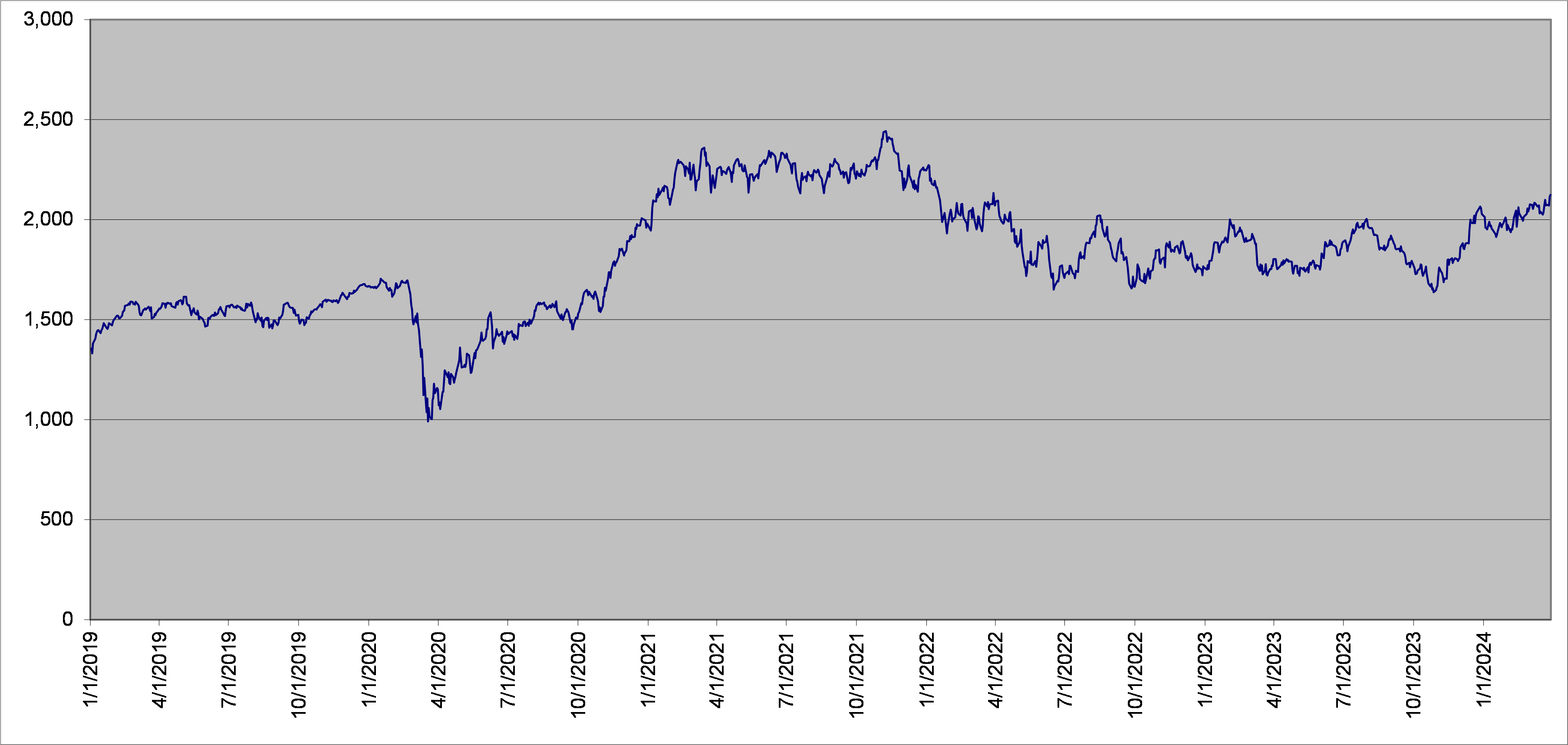 | NDX指数每日指数收盘价 2019年1月1日至2024年3月28日 |