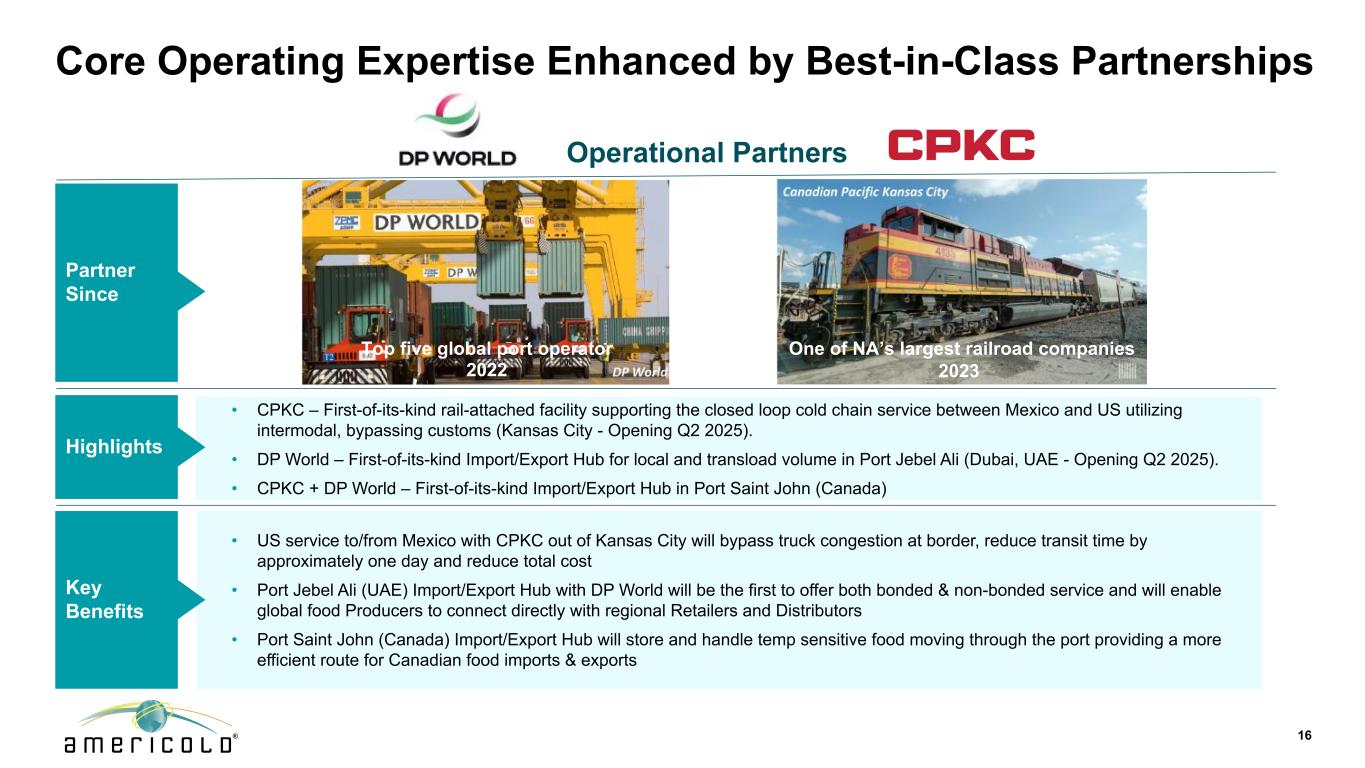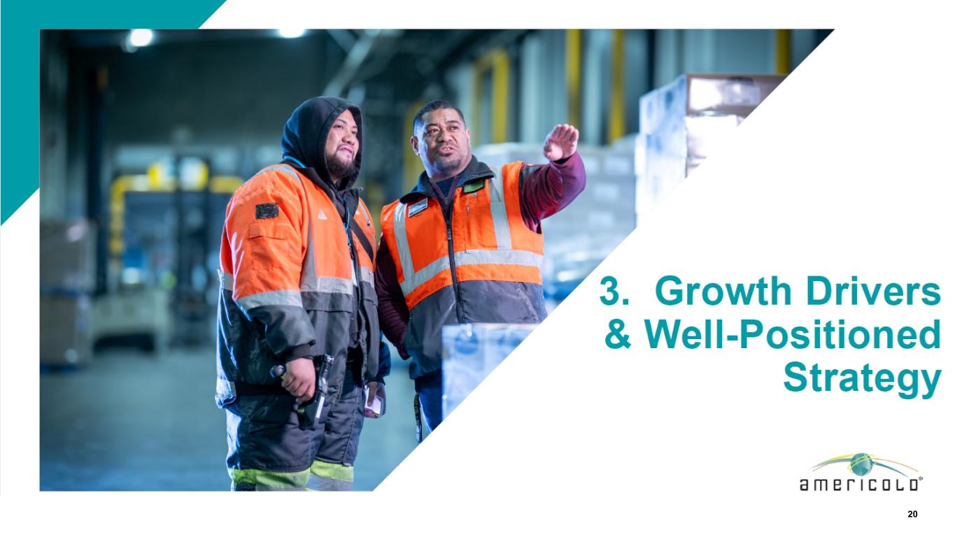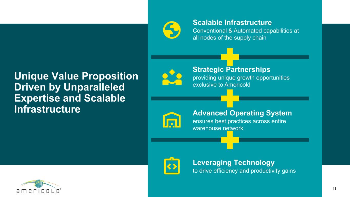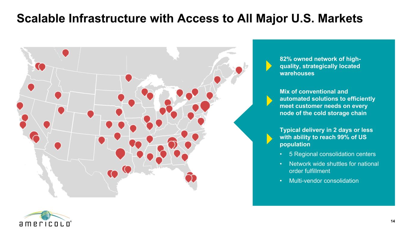 13独特的价值主张,由无与伦比的专业知识和可扩展的基础设施战略合作伙伴关系驱动,提供Americold可扩展基础设施独有的独特增长机会供应链所有节点的常规和自动化能力先进的操作系统确保了整个仓库网络的最佳实践,利用技术推动效率和生产力的提高