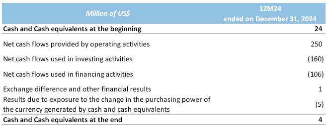 12M24期间现金及现金等价物净减少1600万美元。汇兑差额和其他财务业绩为100万美元,而货币购买力变化导致的现金和现金等价物的货币损失为1000万美元。因此,鉴于截至2024年1月1日的现金和现金等价物为2800万美元,截至2024年12月31日,最终为400万美元。