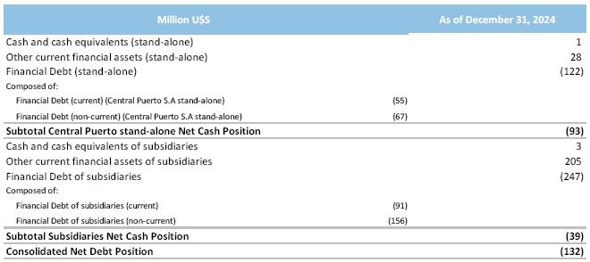 下图对Central Puerto(单独计算)及其子公司的净债务头寸进行了细分: