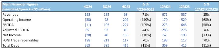 重要通知:鉴于本季度通货膨胀率高于货币贬值幅度,2024年年度和24年第四季度的业绩酌情受到非现金效应的正面或负面影响。由于Central Puerto的功能货币是阿根廷比索,我们的财务报表会根据通货膨胀进行调整,而公司的报告数字则使用期末官方汇率换算成美元。因此,鉴于该时期通胀和贬值之间的差异,它可能会影响可比性。 |