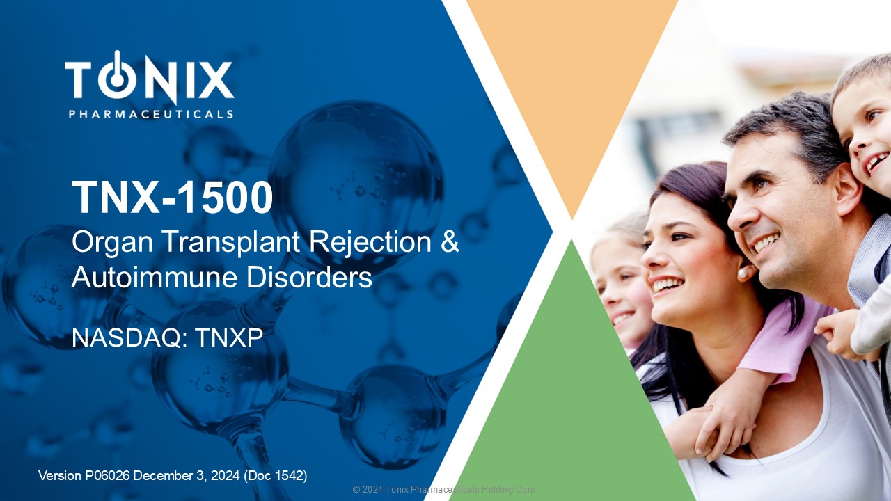 ©2024 Tonix Pharmaceuticals Holding Corp. TNX-1500器官移植排斥和自身免疫性疾病NASDAQ:TNXP P06026版2024年12月3日(doc 1542)