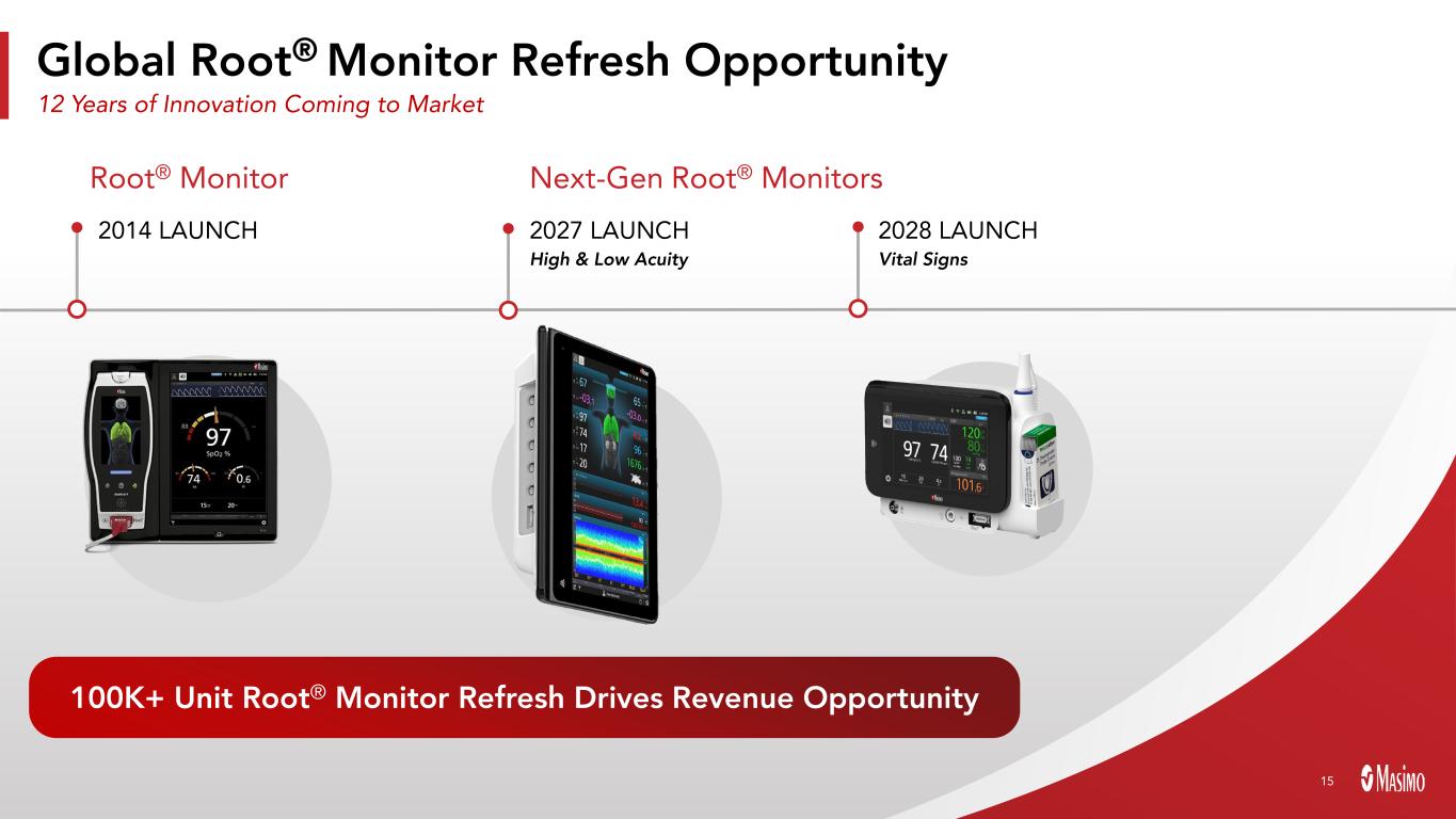 全球根®Monitor刷新机会12年创新来市场根®监测下一代根®监测高低敏度生命体征2027年发射2028年发射2014年发射100K +单位根®显示器刷新推动收入机会15