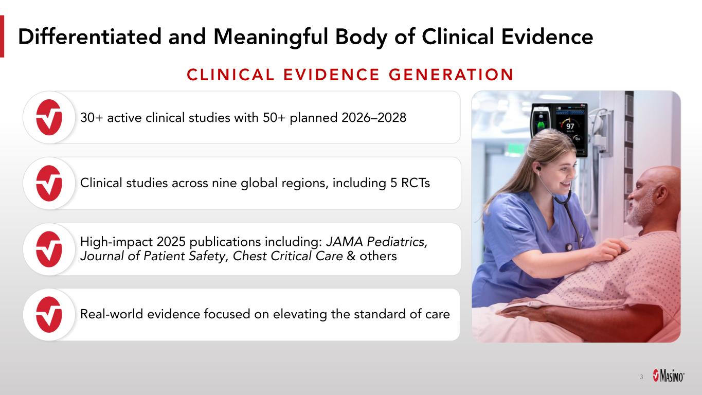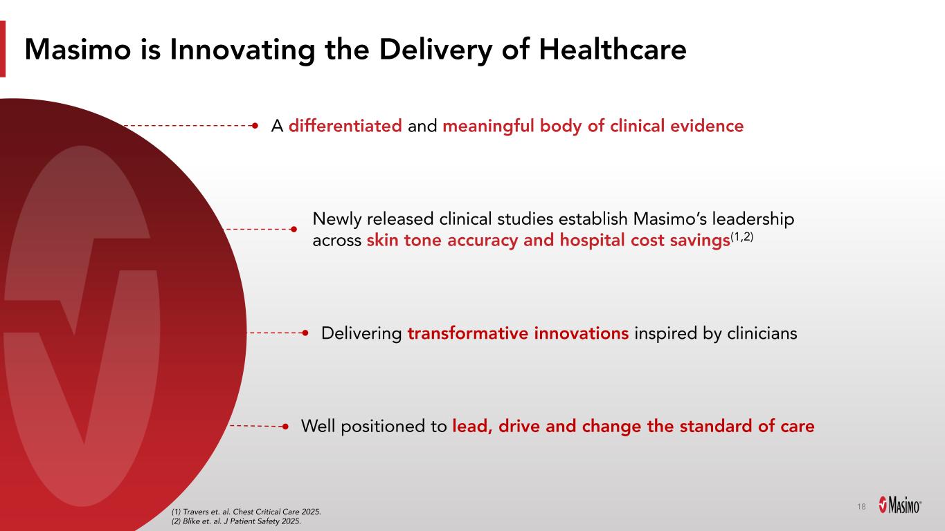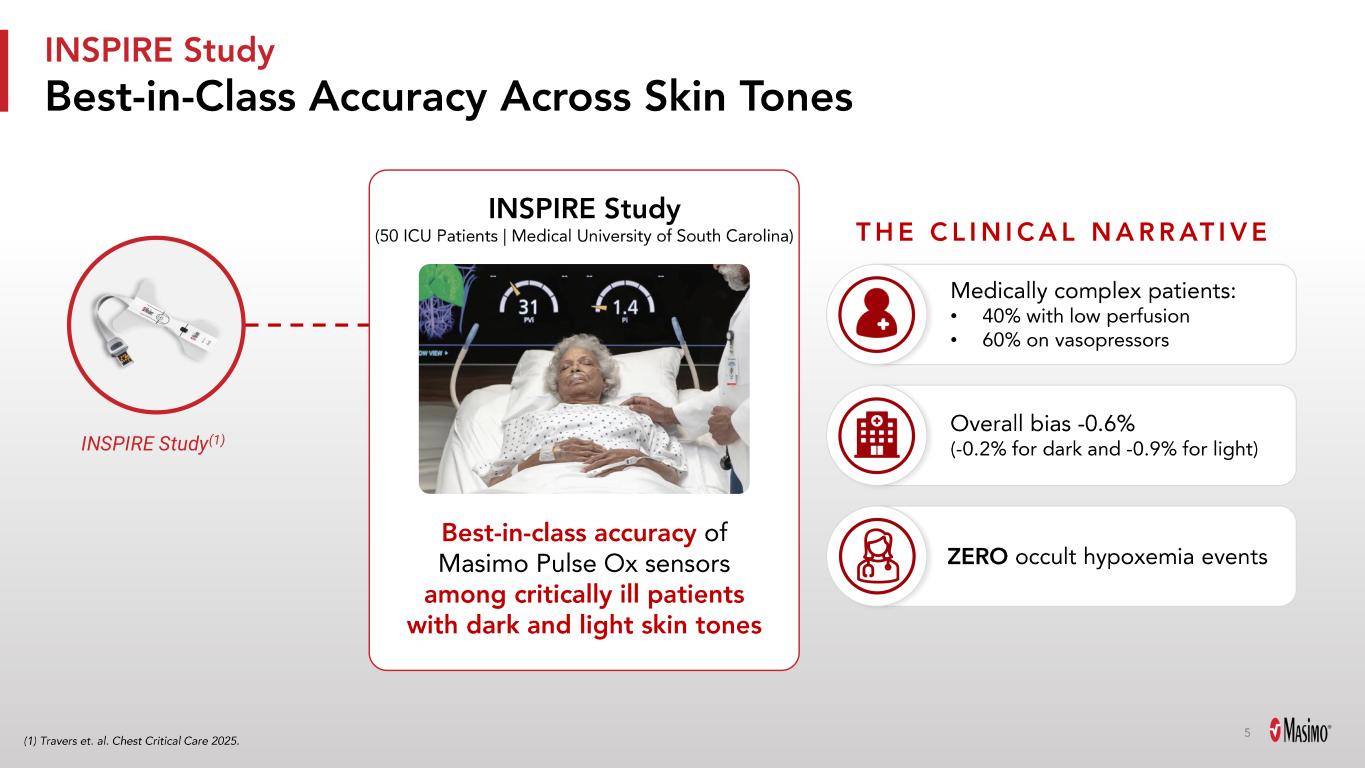 麦斯莫正在创新提供医疗保健这是一组差异化且有意义的临床证据新发布的临床研究确立了麦斯莫在肤色准确性和医院成本节约方面的领导地位(1,2)提供受临床医生启发的变革性创新,以引领、推动和改变护理标准(1)Travers等。胸部重症监护2025。(2)Blike et. al. J Patient Safety 2025。2