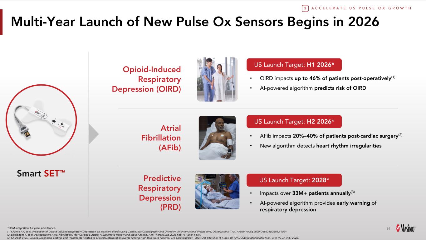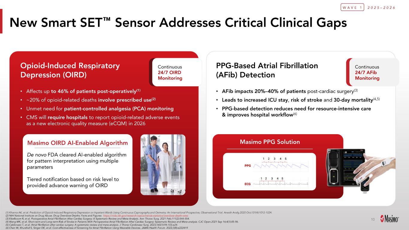 WAVE 32028 +推出下一代AI支持的脉冲OX传感器Smart SET First AI支持的传感器,旨在检测患者恶化情况,提供3种新的算法临床见解:OIRD、AFIB和PRD将于2026年底推出(美国和欧盟)Smart SET RD SET®LNCS®介绍麦斯莫 15 – 20269