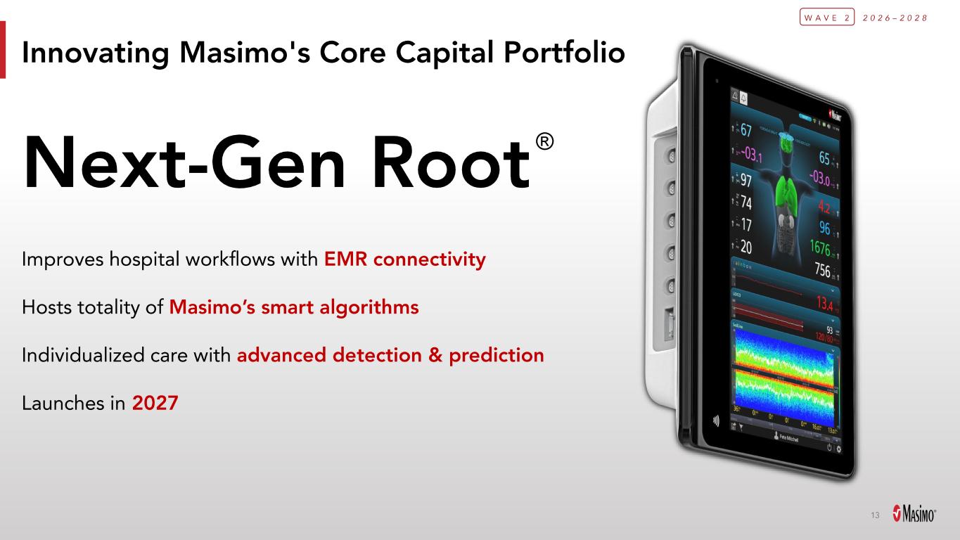 WAVE22026 – 2028 Next GeneRoot通过EMR连接来改进医院工作流程Host total of 麦斯莫的智能算法个性化护理与先进的检测和预测于2027年推出,创新了麦斯莫的核心资本组合®13