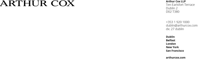 | 1.4 | 本意见仅限于并在所有方面根据爱尔兰法院目前适用的截至本意见发表之日有效的爱尔兰法律(指不包括北爱尔兰的爱尔兰)提出。我们没有对任何其他司法管辖区的法律或其对本意见的影响进行调查,也没有对其发表意见。这一意见仅代表其日期。我们不承担在未来任何时候更新本意见或就本意见日期之后可能发生的任何法律变化、法律解释变化或爱尔兰税务专员的实践变化向您提供建议的义务。 |